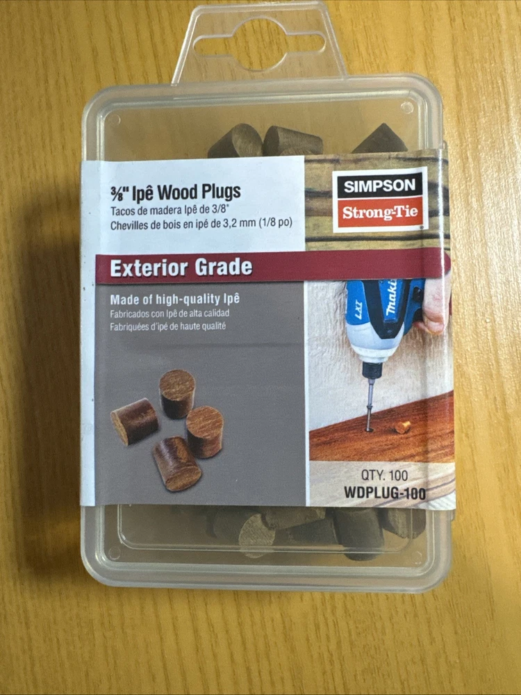 The Simpson Strong Tie 3/8” Tapered Ipe Wood Plugs are a modern and durable option for exterior use. Made by the reputable brand Simpson Strong-Tie in the United States, these plugs come in a quantity of 100. Perfect for various home and garden projects, these tapered wood plugs provide a strong and secure hold for your needs.