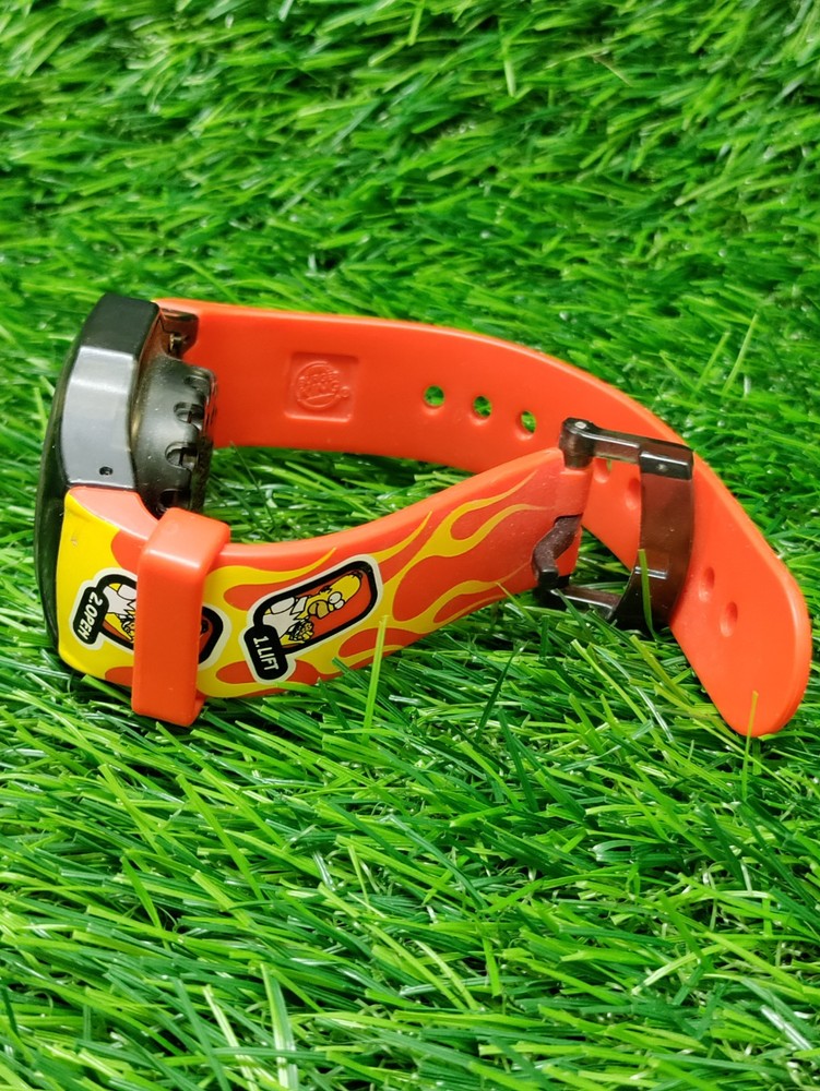 Works. This is a Burger King kids wristwatch featuring Homer Simpson from "The Simpsons". The watch has a red band, a yellow dial, and a digital display. It is equipped with a talking feature and is part of a promotional campaign called Exercise Curl #428. This collectible item is a fun and unique piece of animation merchandise for fans of "The Simpsons". Please check pictures for condition. We do our best to assure that you receive your order correctly and promptly but sometimes we can make an honest mistake, please contact us directly if you are not satisfied with your order for any reason. If your order is not as described we will cover all the return shipping costs and issue a prompt refund once it is receive. All items must be sent back in their original condition with all parts or pieces along with the original packaging. If any order is sent back and is as described and there is nothing wrong with it, not in the original packaging or missing parts or pieces, you will be responsible to pay the return shipping costs and there will be a 35% restocking fee to help recoup some of the original shipping and handling costs, Ebay and Paypal fees no exceptions
