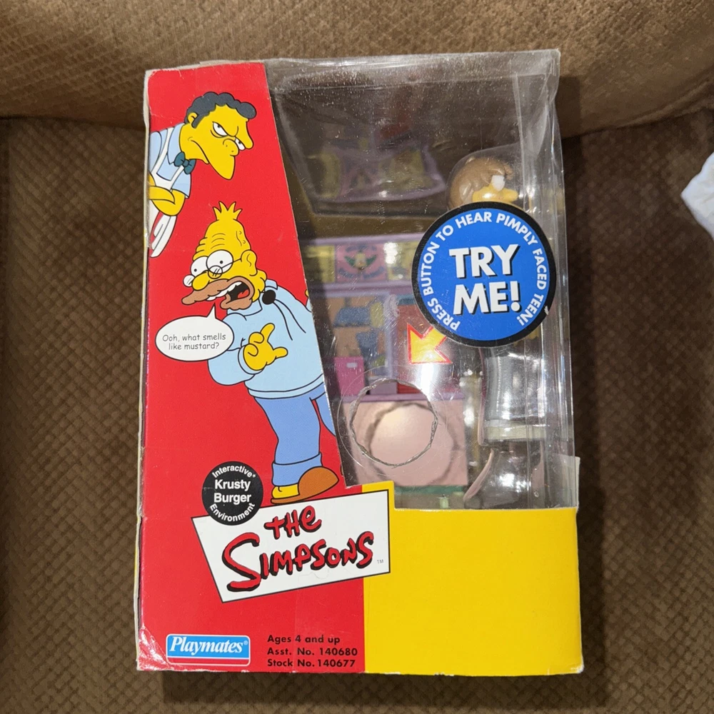 This interactive Simpsons Krusty Burger Pimply Faced Teen Action Figure is a must-have for any fan of the iconic TV show. Manufactured by Playmates Toys in the 2000-2009 time period, this 6-inch set features a detailed representation of the popular character, complete with acne-covered face and teenage attitude. Designed for children aged 4+, this action figure is perfect for imaginative play and recreation. With its high-quality construction and attention to detail, it is sure to be a hit with collectors and fans alike. Don't miss out on the opportunity to add this unique piece to your collection!