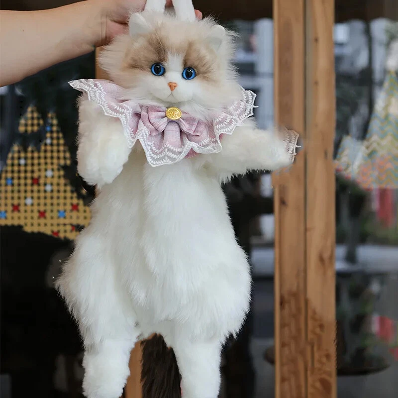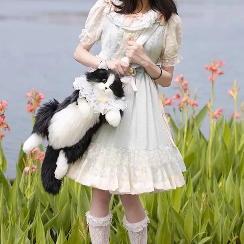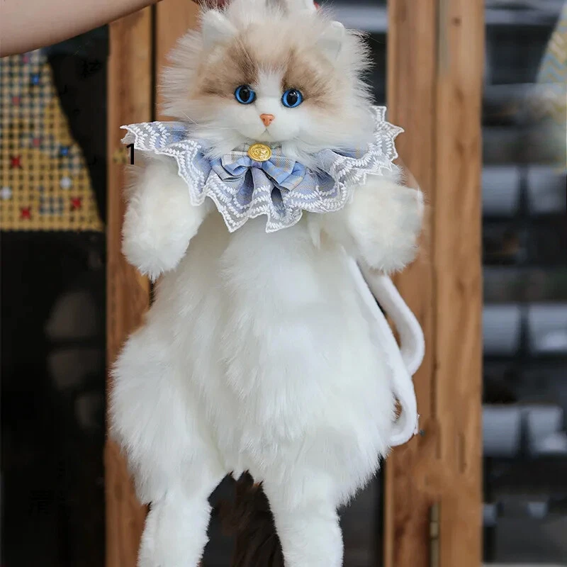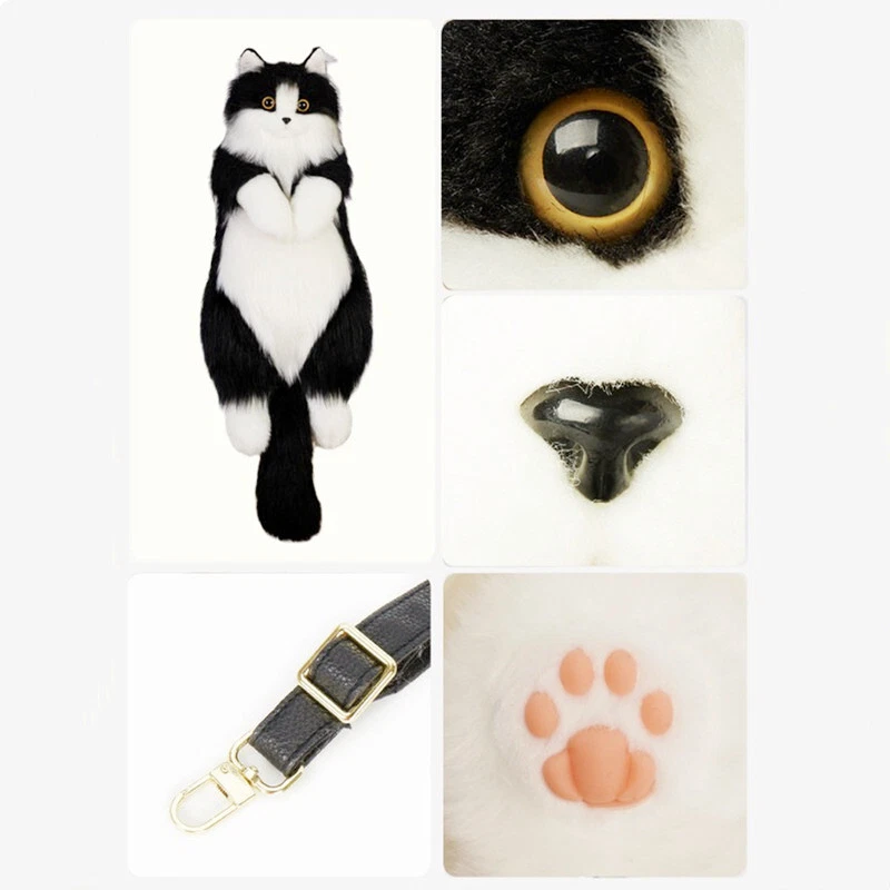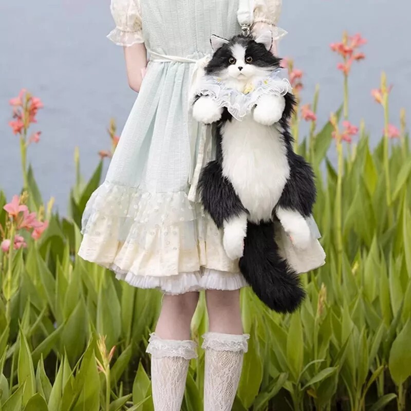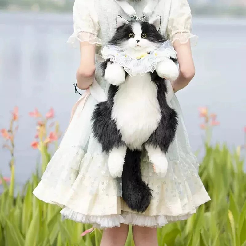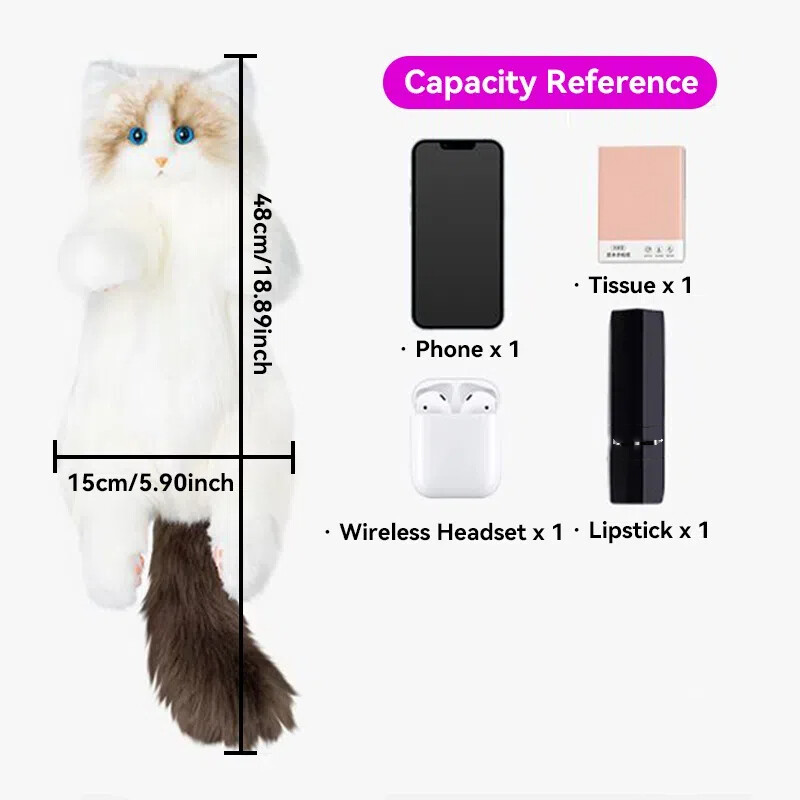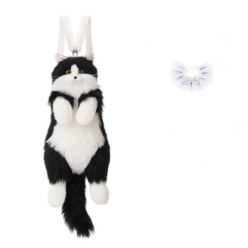 Simulated Stuffed Cat Backpack Realistic Animal Stuffed Bag Plush Backpack Toy Handmade Ragdoll Calico Cow Cat kitty Plush Backpack Realistic Stuffed Animal Bag for Cat Lovers Feature Large Capacity: Can store one mobile phone, one pair of wireless earphones, one pack of tissues, and one lipstick. No Shedding: No need to worry about shedding. It can meet the preferences of cat owners. One Bag for Two Uses: The shoulder strap is detachable and adjustable, allowing for easy switching between the backpack and the doll. Fashion: The backpack is designed for cats, lively and fun. Trendy Pairing: Cat backpack paired with lace scarf, trendy and fashionable. Specification Name: Cat Backpack Function: Cross/Shoulder/Single Shoulder Major Material: Polyester (Polyester Fiber) Size: 50cm in Length x 20cm in Width x 15cm in Leg Length(Cow Cat) 50cm in Length x 20cm in Width x 15cm in Leg Length(Calico Cat) 50cm in Length x 15cm in Width x 15cm in Leg Length(Ragdoll Cat) Weight: Approximately 400g(Cow Cat) Approximately 400g(Calico Cat) Approximately 600g(Ragdoll Cat) Shoulder Strap Length: Approximately 120cm Adjustable. Packaging: Cow Cat(Without Scarf): Cow Cat + Strap Cow Cat(Pink Scarf): Cow Cat + Strap + Pink Scarf + Comb Cow Cat(Blue Scarf): Cow Cat + Strap + Blue Scarf + Comb Calico Cat(Without Scarf): Calico Cat + Strap Calico Cat(Pink Scarf): Calico Cat + Strap + Pink Scarf + Comb Calico Cat(Blue Scarf): Calico Cat + Strap + Blue Scarf + Comb Ragdoll Cat(Without Scarf): Ragdoll Cat + Strap Ragdoll Cat(Pink Scarf): Ragdoll Cat + Strap + Pink Scarf + Comb Ragdoll Cat(Blue Scarf): Ragdoll Cat + Strap + Blue Scarf + Comb