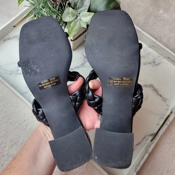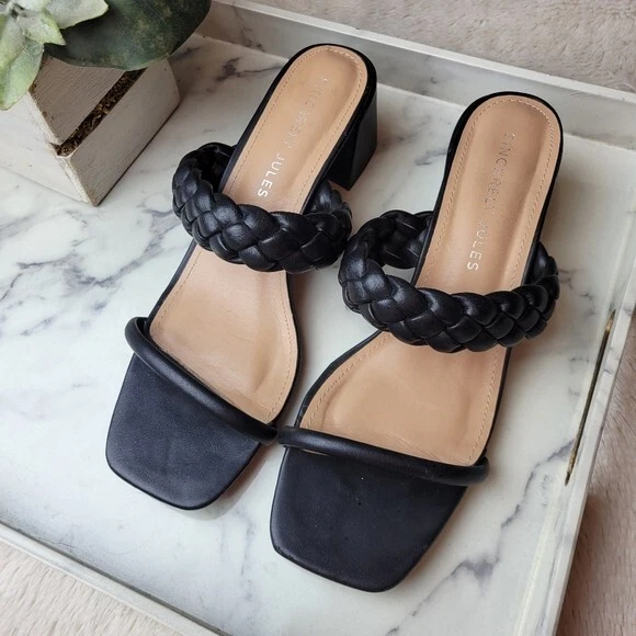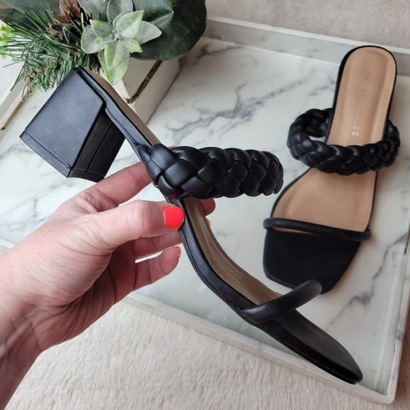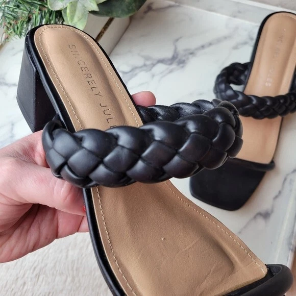 Sincerely Jules Size 9.5 Vanna Black Braided Square Toe Sandal Trendy. Ships With USPS Ground Advantage Mail -On trend with a square toe and braided strap, these sandals come with a modest heel making them an easy transition from the office to dinner with friends. Dress up or down! -Size 9.5 -Slip on styling -Lightly cushioned footbed -Flexible cushioned straps -Manmade materials -2.25 in block heel -Preloved in great condition! No box --------------------------------- Thanks for looking…have a GREAT DAY! @mandajane223
