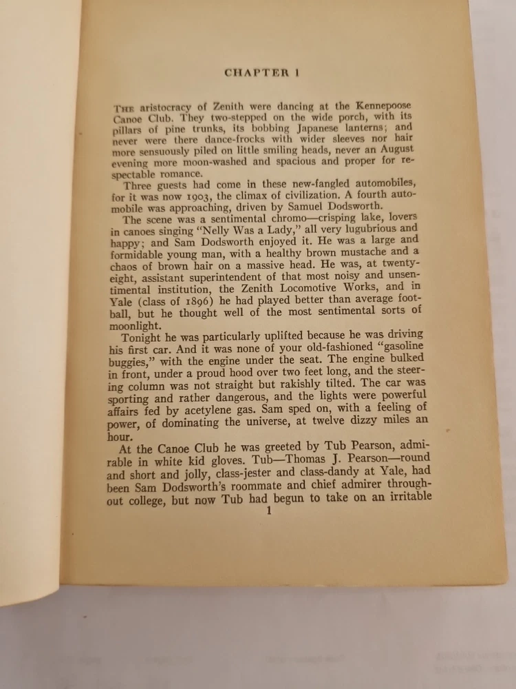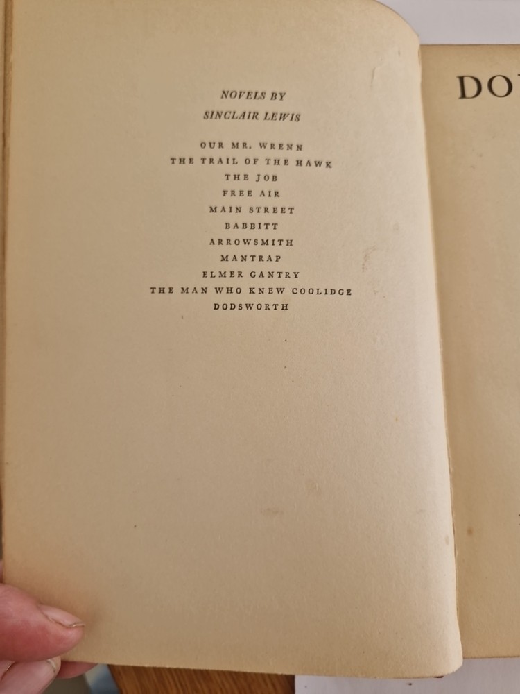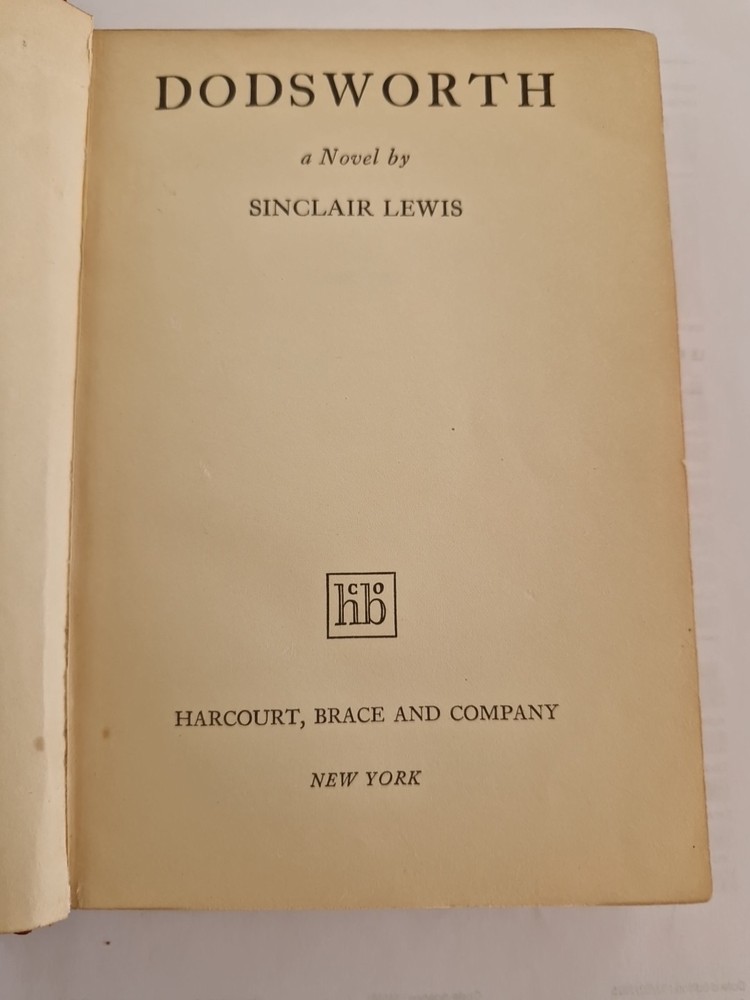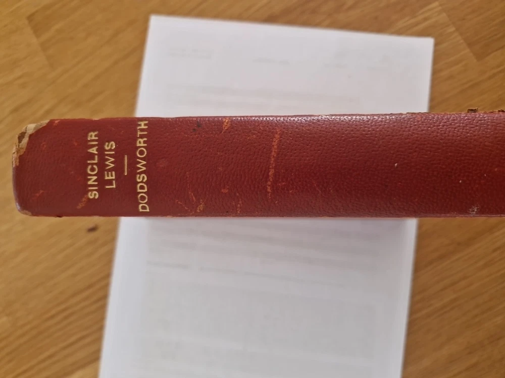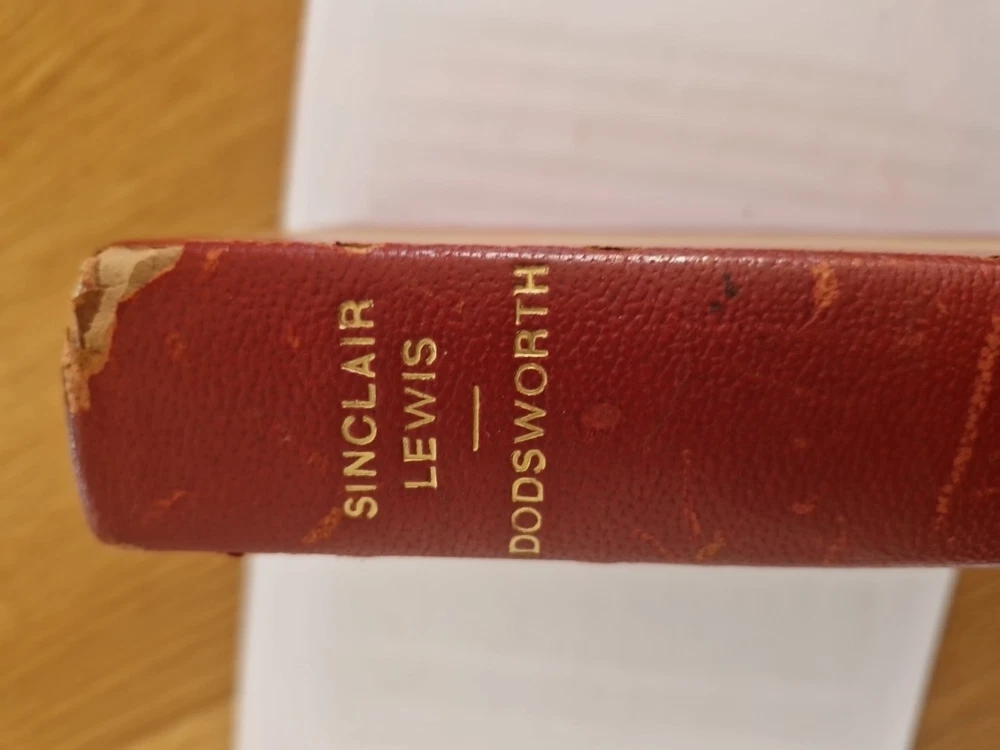 Sinclair Lewis - DODSWORTH - Édition 1929 reliure demi-cuir Dédicacé Copyright, 1929., by Harcourt Brace and company, inc. Publié 1929 mars. Printed in the United States of America by Quinn and Boden company. Première édition. Édition spéciale de présentation signée et dédicacé par l'auteur Sinclair Lewis . Résumé du livre : Samuel Dodsworth, magnat de l'automobile récemment retraité, et sa femme narcissique, Fran, découvrent lors d'un grand voyage en Europe qu'ils ont des aspirations très différentes, ce qui met leur mariage à rude épreuve. « Le livre a été écrit en 1929, une période fascinante de l'histoire ; le film est sorti avant la Seconde Guerre mondiale. » Au niveau de la couverture du livre : le cuir est abimé sur les côtés dû à l usure voir photos.