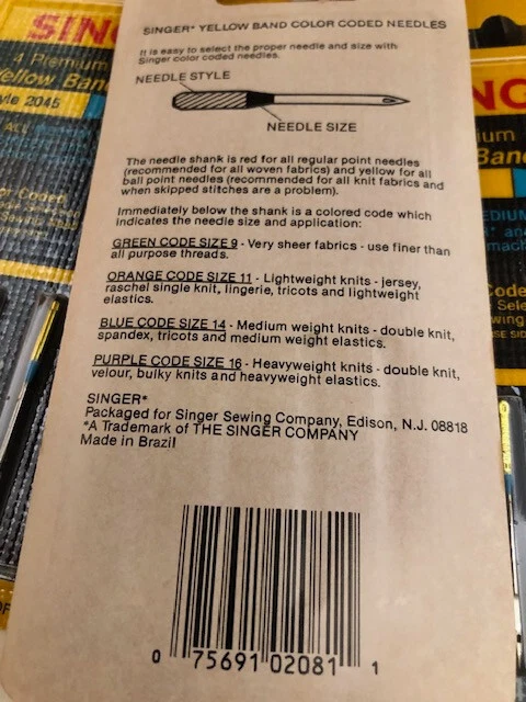 Singer Premium Ball Point Yellow Band Knit Needles 2045 Size 90/14 - 10 Packages
