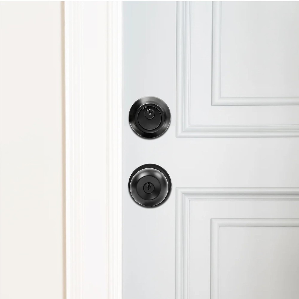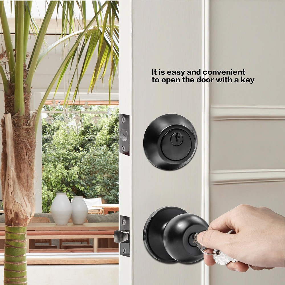 EASY TO INSTALLATION---All you need is a door and a set of tools! One person can complete the installation in 20mins including all accessories. RODUCT INCLUDED---2 sets entry door knob and single cylinder deadbolt.The deadbolt and door knob are keyed outside and with thumb turn button inside.Fitting left or right handed doors. KEYED ALIKE---You can use one key opening all the set of deadbolt and entry lock.The set comes with the same four keys.Keyed alike entry door knob and deadbolt set make life easier. ADJUSTABLE LATCH---Adjustable latch 2-3/8"or 2-3/4"(60mm-70mm); Fit standard door thickness: 1-3/8"to 1-3/4"(35mm- 45mm). DURABILITY---Made from zinc alloy,matte black finished and tested before leaving the factory.Ensure the quality of products. Backed by an Cielsa Dawn 1-year limited .Please us when you encounter problems with our products.