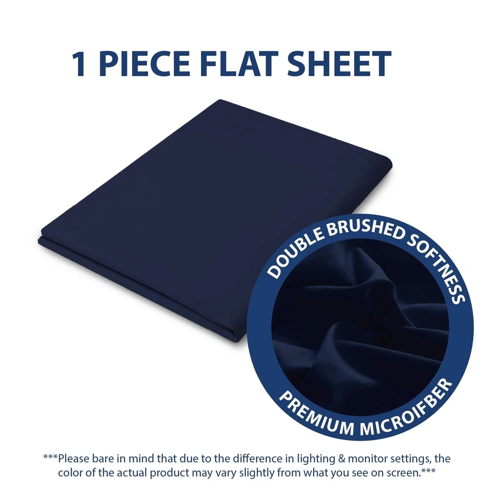 A good night's sleep starts with the right bedding, and sometimes, you find yourself in need of replacing only part of that bedding. Why pay for a whole new set when only one piece is ripped, stained, or simply worn out ? With this great deal on a single flat sheet, you don't have to ! The super-soft and silky-smooth feel microfiber fabric is hypoallergenic, and its array of solid colors allows you to match the rest of your existing bedding or shake things up with a coordinating hue. WHAT’S INCLUDED - Twin size: 1 Flat Sheet 66" x 96". IRRESISTIBLE BEDDING - This beautiful flat sheet will enhance the comfort of your bed and the style of your bedroom. Made of 100% double brushed microfiber, it is lightweight, durable, and buttery soft. *Microfiber is an umbrella term for ultra-fine synthetic fibers that are commonly made from polyester and polyamide. HOME ESSENTIALS - Available in a wide assortment of vivid color options ranging from neutral to bold, this flat sheet, suits any style. *Please bear in mind that due to the difference in lighting and monitor settings, the color of the actual product may vary slightly from what you see on screen. EASY CARE - They are also machine washable and quick drying for easy care. OEKO-TEX CERTIFIED - Tested and certified to be free from harmful chemicals, the sheets meet high safety standards.