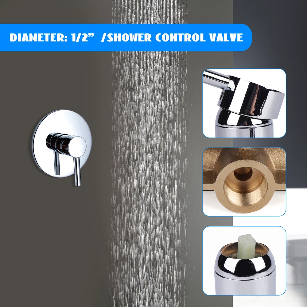 Description Do you always feel that the water temperature is not stable enough when you take a shower? Sometimes hot water comes, but soon it gets cold again. At this point, you need a good mixing valve to solve this problem. Our control valve can accurately control the water temperature to meet your needs for a comfortable shower. At the same time, the appearance of this product is simple and elegant and it is easy to install, allowing you to enjoy a comfortable and enjoyable bathing time! Specification Model: XN-2803D Material: Brass Colour:Sliver Style: Modern Process: Electroplating Assembly Required: Yes Installation Method: Wall Mounted Valve Core Type: Ceramic Valve Core Cold and Hot Water Control Type: Single Handle Dual Control Nominal Pressure: 6MPA Working Temper Shower Faucet Control Valve Single Handle Hot & Cold Mixer Control Valve Brass Description Do you always feel that the water temperature is not stable enough when you take a shower? Sometimes hot water comes, but soon it gets cold again. At this point, you need a good mixing valve to solve this problem. Our control valve can accurately control the water temperature to meet your needs for a comfortable shower. At the same time, the appearance of this product is simple and elegant and it is easy to install, allowing you to enjoy a comfortable and enjoyable bathing time! Specification Model: XN-2803D Material: Brass Colour:Sliver Style: Modern Process: Electroplating Assembly Required: Yes Installation Method: Wall Mounted Valve Core Type: Ceramic Valve Core Cold and Hot Water Control Type: Single Handle Dual Control Nominal Pressure: 6MPA Working Temperature:80°C/176℉ Inlet and Outlet Pipe Diameter: 1.27cm/ 1/2in Gross Weight: 0.8kg/ 1.76 lbs Product Size(W*H): 6*8.5 cm/ 2.36*3.35 in Chassis diameter: 16cm/6.3in Package Size: 19.5*19.5*7 cm/7.68*7.68*2.76 in Package Included 1 * Control Valve All Accessories for Installation Key Features High-quality Material: This product is made of high-quality brass, with high wear resistance, anti-corrosion, rust prevention performance, and long service life. Fashionable Appearance: The classic silver color gives the product a strong sense of modernity and design. The minimalist lines can match any bathroom style and bring a more fashionable atmosphere to your bathroom. Easy to Use: The ergonomic handle provides a comfortable grip, allowing you to adjust the amount of water and hot and cold water by simply moving it up, down, left, and right. Multi Functional: The single handle structure can control water flow, water volume, cold and hot water, thus meeting your various water needs. Easy to Install: The simple product structure and complete installation parts inside the packaging can help you complete the installation quickly and accurately. Easy to Clean: The simple product structure and smooth electroplated surface make it easy to clean and less likely to leave water stains and fingerprints. You just need to wipe it gently with a cloth. Space Saving: The compact structure of the product (2.36 * 3.35 inches) does not take up too much of your countertop space, making it ideal for bathrooms with limited space. Good Customer Service: Communication is the best way to solve problems. If you encounter any problem after purchase, please contact us in time before opening or unpacking the box. We will do our best to solve the problem for you. Details Smooth Edges: Smooth edges prevent you from being scratched during use, providing you with higher safety. 1/2 " Interface: The standard 1/2" interface is suitable for most standard water pipes and is easy to purchase. Application This product is suitable for showering in homes, hotels, gyms, swimming pools, etc. Notes Please allow the slight color difference caused by the shooting light and the 1-3 cm error due to manual measurement, and make sure you do not mind before ordering. Due to different producing batches, product details might be a little different. If you minding the difference, please buy it carefully. Payment Delivery details Terms of sales About us Contact us Payment We accept ebay payment 。 Fees such as import duties, taxes are not included in the item price or shipping costs. These charges are the buyer's responsibility. Delivery details Shipping: 2-9 working days to: USA Terms of sales We maintain high standards of excellence and strive for hundred percent customer satisfaction. Feedback is very important to us. We hope that you contact us immediately before you give neutral or negative feedback, so that we can address your concerns. It is impossible to address issues if we do not know about them! About us Your satis faction is our ultimate goal. We work hard to earn your trust and future business. Our certified technicians have tested each item before shipping. The unit comes with 1 year limited warranty on all manufacturing defects. a) If you receive a defective item, you may return it or ask for a discount. Please contact us within 14 days after you receive the package. b) What you returned must be intact and in its original packaging as re? u. Customer is responsible for shipping costs of the returned item. c) We will cover the cost of shipping back t with the shipping rate indicated in the registration page. We will send you a new unit or refund the full payment you paid. Thank you. Contact us Business Hour Business Hour: Monday To Friday: 8:30 AM to 5:00 PM (Beijing China time) Due to time zones, our reply to your questions may not be immediately. But within above working time, we will reply your email within 24 hours. If it's non-workdays, please kindly be patient and wait till Monday. Please contact us with ebay message. Please feel free to contact us if you have any questions. Monday To Friday: 8:30 AM to 5:00 PM (Beijing China time) Due to time zones, our reply to your questions may not be immediately. But within above working time, we will reply your email within 24 hours. If it's non-workdays, please kindly be 