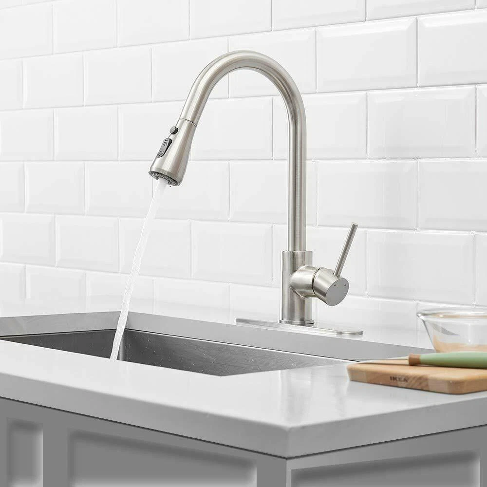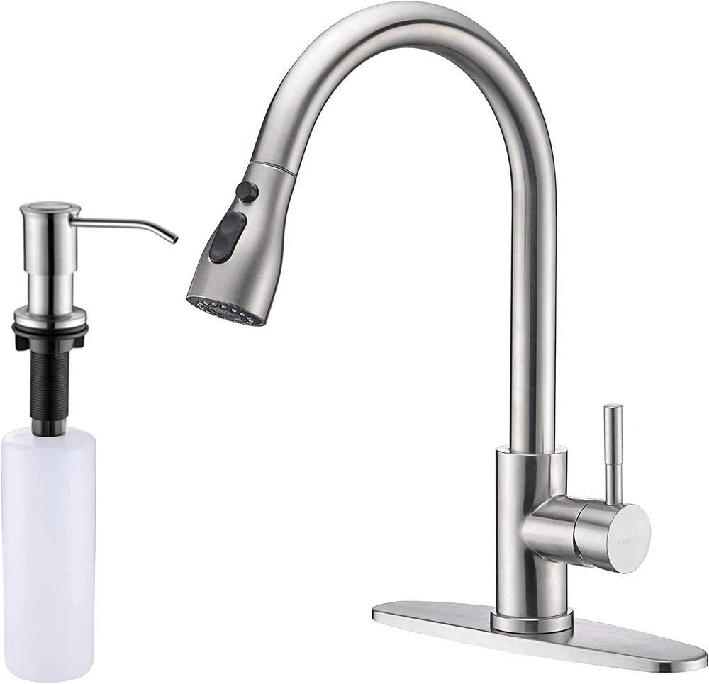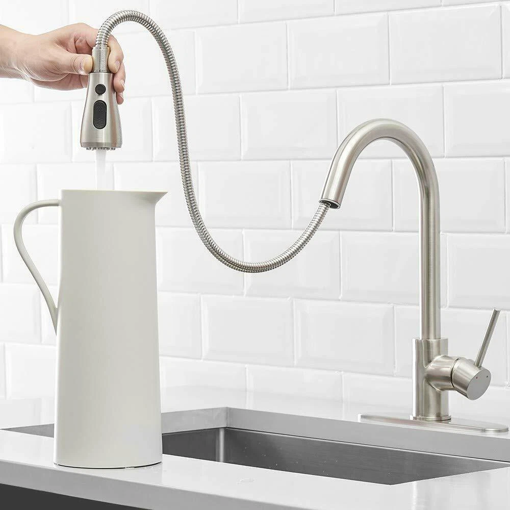Product Description Function: Kitchen Sink Faucet Feature :Swivel Spout,pull down sprayer Finish: Brushed Nickel Number of Handles: Single Handle Installation Holes: One or Threee Holes Faucet Total Height: As picture shows Valve Type: Ceramic Valve Faucet Body Material: Stainless Steel Faucet Spout Material: ABS Faucet Handle Material: Brass With 2 pipes for cold and hot water(40cm) Water Feature:Mix Hot and Cold Water Pressures:Minimum 0.5 bar, 1.0 bar recommended Water Flow: 1.8 GPM 5 Years warranty Safety first - all bathroom faucet and commercial faucets designed for drinking water use are fully compliant with the latest federal and state lead-free standards Easy to install. Swivel Spout can make the faucet fit for double bowl kitchen sink This is a multi-attribute link, we will ship according to your choice, please choose the option you want before buying! Payment Only PayPal is Accepted. Immediately payment is required after the Winning Bid or Buy it Now Shipping Usually shipment can be arranged within 1 working days after receiving payment. We usually ship by Fedex ,UPS,China Post. Usually the delivery time is 7-20 days. Remote areas will needs extra shipping cost and more time. We ship according to the address on PayPal. (After you make the payment, PayPal will send us an email automatically, informing us the payment and shipping address.) So please make sure your address on PayPal is the right one.We do not ship to PO.BOX address Mail transit time is best estimated, but not guaranteed. As transit time varies. Contact us Shipping damage has to be reported within 7 business days of which the product was delivered. If you have any questions, please be free to contact with us by eBay massage,we will answer your questions ASAP. Feedback I describe items as well as I can. If I have missed something, please let me know. Please e-mail me before leaving feedback if you are unhappy with your item, so we can work it out. International Buyers – Please Note: Import duties, taxes, and charges are not included in the item price or shipping cost. On Jun-05-21 at 02:34:11 PDT, seller added the following information: ????? We hope our products and our service can give you a wonderful experience ?????