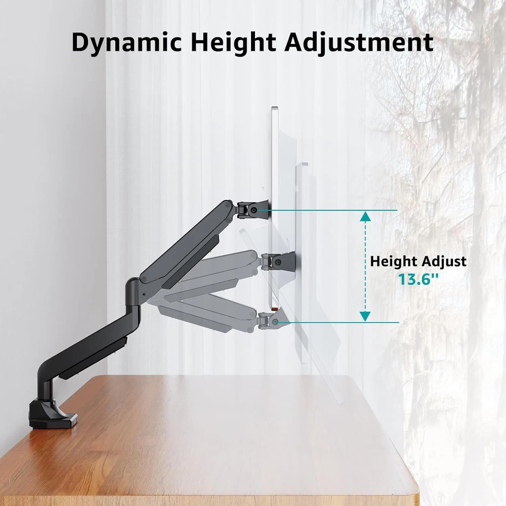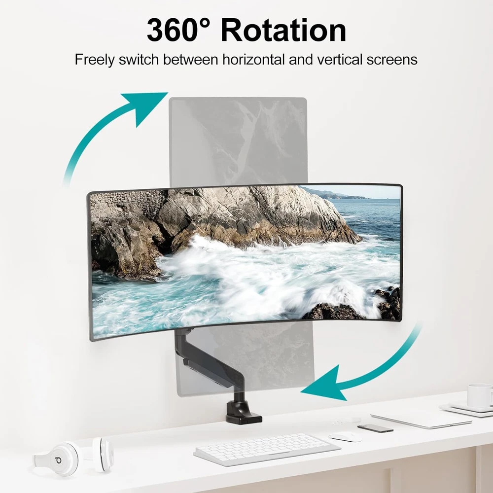 Product Description Single Monitor Mount For 22-43 Inch Ultrawide Computer Screen, Premium Aluminum Heavy Duty Monitor Arm Desk Mount Holds 6.6Lbs To 33Lbs, Gas Spring Full Motion Monitor Stand, Vesa Mount Perfect For Ultrawide Monitor - Our Computer Monitor Stand Is Designed To Accommodate Larger And Heavier Screens, Fits 22"-43" Monitor, Holds Monitor Weight From 6.6 To 33 Lbs, Suitable For Vesa Patterns Of 75X75Mm & 100X100Mm. Compatible With Different Sizes Of Computer Screen, Including Popular Options Like 43", 42", 39", 37", 35", 34", 32", And 27" Screen, Fit 1800R Curved Displays (Not Compatible With 1000R Curved). Enjoy Comfortable Ergonomics - Our Single Monitor Desk Mount Offers User-Friendly And Intuitive Adjustments, Enabling You To Personalize The Display According To Your Specific Needs And Preferences. It Can Tilt Up To -90° Or +45° To Minimize Screen Glare And Rotate 360° To Switch Between Portrait Or Landscape Orientations. Additionally, The Horizontal Orientation Features A Swivel 180° Adjustment Function That Allows You To View The Screen From Different Seat Positions. Stay Healthy And Focused - Say Goodbye To Neck And Shoulder Pain With Our Premium Ultrawide Monitor Mount. It Can Extend Up To 25 Inches Long And Rise Up To 19.69 Inches High, Allowing You To Elevate Your Monitor To Eye Level. This Improves Your Posture And Reduces Strain On Your Neck And Shoulders, Helping You Stay Productive And Focused Throughout The Day. Ultimate Desktop Space Saver - By Mounting Your Monitors On Our Heavy-Duty Monitor Arm, You Can Save Over 80% Of Your Desk Space, Creating A Cleaner And More Organized Workspace. The Computer Monitor Mount Also Provides Top-To-Bottom Cable Management, Ensuring That You Don'T Have To Worry About Messy Wires. Assembly Is A Simple Task - Our Single Monitor Arm Built With Upgraded Material, And Solid Construction, Ensures Safety And Stability For Your Setup. Mounting Your Monitor Is A Simple Process With A Quick-Release Vesa Plate, And We Provide Labeled Parts And Clear Instructions For You. Depending On The Desk Situation, You Can Choose Clamp Mounting (Suitable For Desks From 0.4''~1.97'' Thick) Or Grommet Mounting(Suitable For Desks From 0.4''~2.16" Thick). About Us We are a reputable seller with many years of experience selling on eBay. Our goal is to provide high-quality products and excellent customer service. Shipping Items will be shipped within 1-3 business days when we received payment. (Orders are not processed on weekends & holidays) Tracking information will be sent once item is shipped. Delivery time depends on destination and other factors Item is shipped to ebay address. Leaving correct address can minimize delay. For international shipping and shipping to Guam, Hawaii and Alaska, Please contact us before placing the order. International buyers please note: Import duties, taxes and charges are not included in the item price or shipping charges. These charges are buyer’s responsibility. We will try our best to reduce the risk of the custom duties. Local pick-up is unavailable at the moment. Contact Us We reply any email messages within 1 business / working days(off-duty at weekend). If you do not get a response from us, then please check your junk or spam mailbox. Our Business hours: Mon-Fri 9:00-18:00, UTC/GMT +8 hours. Please contact us either by clicking "contact seller" in the "purchase history" section or simply click "ask a question" at the bottom of this page. If you are unsatisfied with our item or service, please contact us before leaving any feedback. We are committed to resolve all issues in a friendly and satisfactory manner.