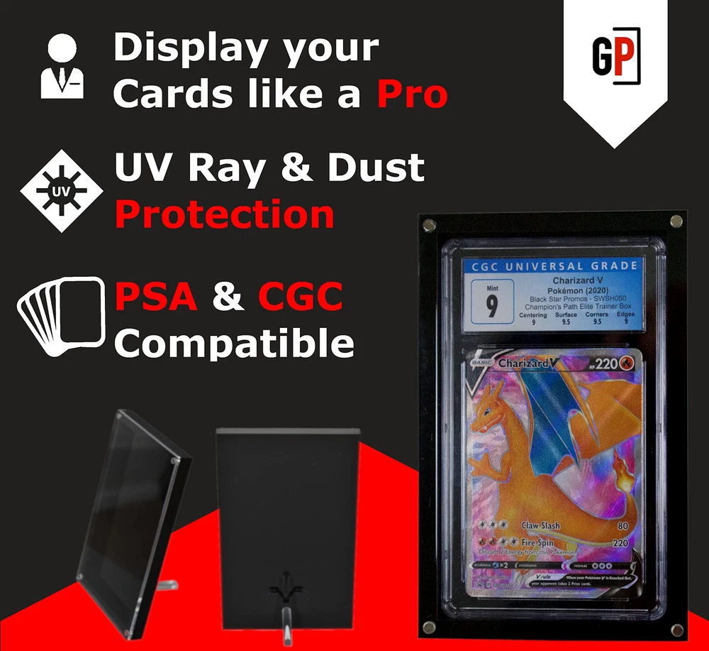 π Showcase Your Collection: This display is perfect for collectors who want to show off their graded cards in style. The sleek and modern design is sure to impress, while the clear front panel allows you to fully appreciate the beauty of your cards. π Easy to Use: You wonβt believe how incredibly user-friendly it is. The clear front panel detaches easily with magnets, so you can quickly add or remove cards as needed. π Maximum Protection: The case is specifically designed to hold PSA and CGC graded cards, ensuring a snug and secure fit. Plus, the black acrylic material provides a sturdy and durable barrier against scratches, scuffs, UV rays and other types of damage. β Satisfaction Guaranteed: We know cards vary in size and offer free returns so your satifcation is guaranteed! This particular product is deisgned to perfectly house a graded card measuring 5.3125 x 3.15625 x 0.25 inches. π The Perfect Gift - This is a great gift for any trading card enthusiast or collector. It's a thoughtful and practical gift that they're sure to appreciate, especially if they're looking for a way to display their prized collection.
