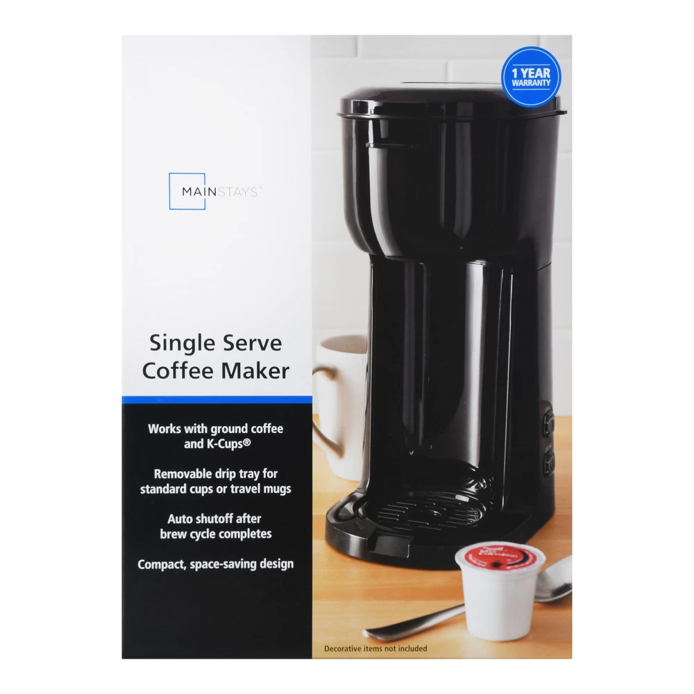 Single Serve Coffee Maker, Single Serve,Dual Brew Capsule or Ground Coffee Features No features description available Brand Mainstays Manufacturer Part Number 201963 Color Black Assembled Product Weight 2.85 lb Model 201963 Assembled Product Dimensions (L x W x H) 9.41 x 5.47 x 6.14 Inches