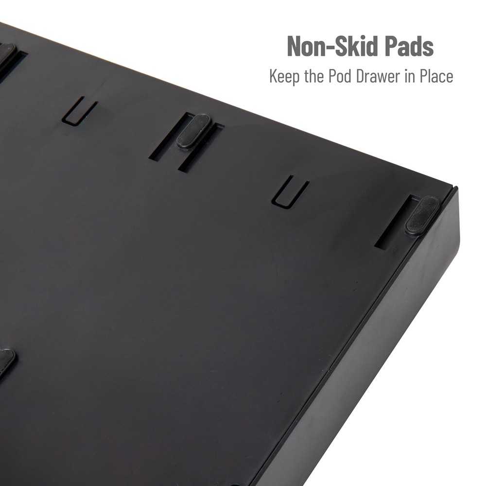 Versatile Storage Solution: With a total of ten compartments and three drawers spread across two matching pieces, this set offers ample storage space to organize your coffee and condiments effectively Optimized Space Usage: The stackable design of the flat pod storage drawer provides a sturdy base for your coffee maker, while the slim tower organizer fits snugly on top, maximizing your counter space and creating an efficient setup Secure and Stable: Designed with a non-slip feature, both the drawer and condiment caddy stay securely in place during usage, preventing any accidental slips or spills Lightweight and Durable: Made from food-safe materials, this sleek set is lightweight, weighing only 1 pound (453 grams), making it easy to move and reposition as needed. Despite its lightweight design, it is built to withstand daily use Compact Dimensions: The pod drawer measures 13.5 inches long x 12.25 inches wide x 2.5 inches tall (34.29 x 31.11 x 6.35 centimeters), the condiment caddy is 5.35 inches long x 11.25 inches wide x 11.15 inches tall (13.59 x 28.57 x 28.32 centimeters)