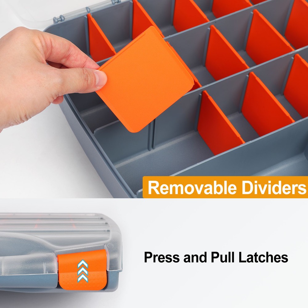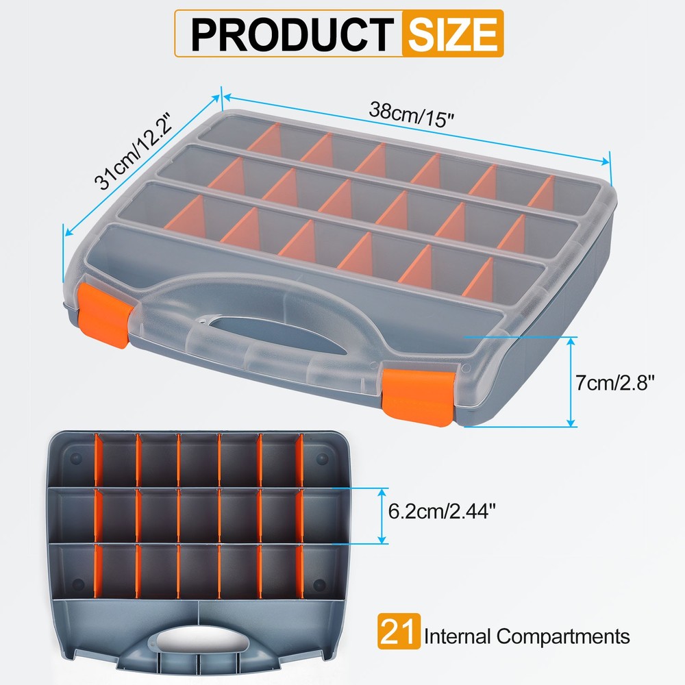 Single Side Tool Organizer 15"x12.2"x2.8" 21-Compartment Tool Storage Box