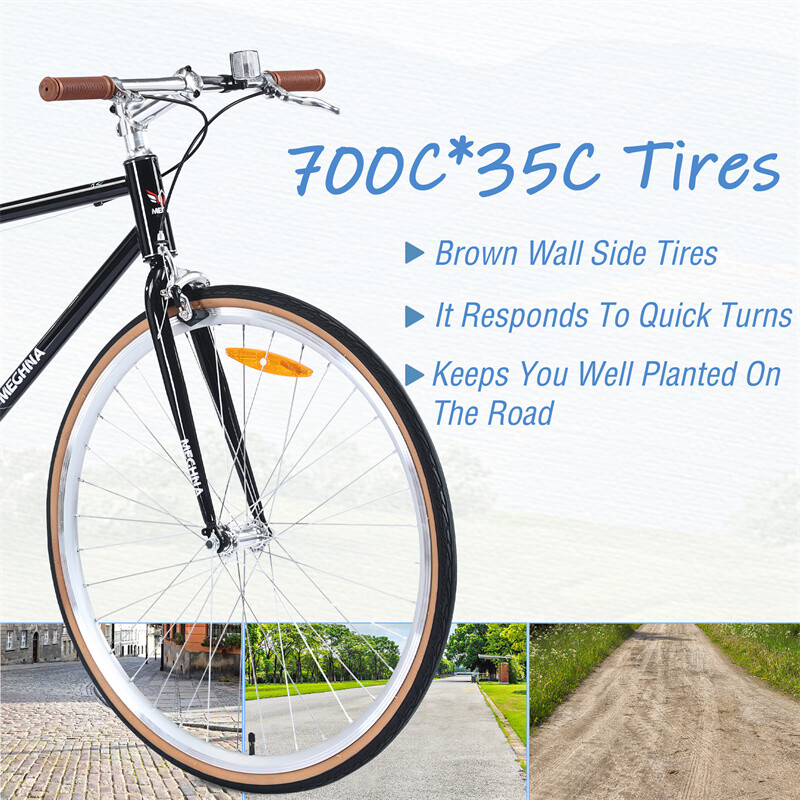 Specification Product Information Product Type:Single Box Product Product Name:Single Speed Retro style 700C Road Bike For men women's City Bicycle,Steel Frame Main Color:Black Main Material:Steel Product Dimensions Assembled Length (in.):64.97 Assembled Width (in.):24.41 Assembled Height (in.):38.52 Product Weight (lbs.):28.66 Package Size Length (in.):53.15 Width (in.):7.09 Height (in.):28.35 Weight (lbs.):34.83 Product Features 700C Hybrid bike,sturdy and durable steel frame, provide safe and stable cycling experience. Ergonomically design, suitable for mens womens height 5'3"-5'8", max weight is up to 220lbs. Double layer aluminium alloy rims and 700*35C High-performance tyres,It responds to quick turns keeps you well planted on the road. Easy Riding,single speed system is simple to use,double caliper brakes more secure and faster braking response. 85% pre-assembled,easy to assemble,free installation tools and pedals include. Description Product Details Bike Type Road Bike ,Hybrid Bike Age Range (Description) Adult Number of Speed Single Speed Wheel Size 700C Frame Material Steel Frame Brakes Double Caliper Brakes
