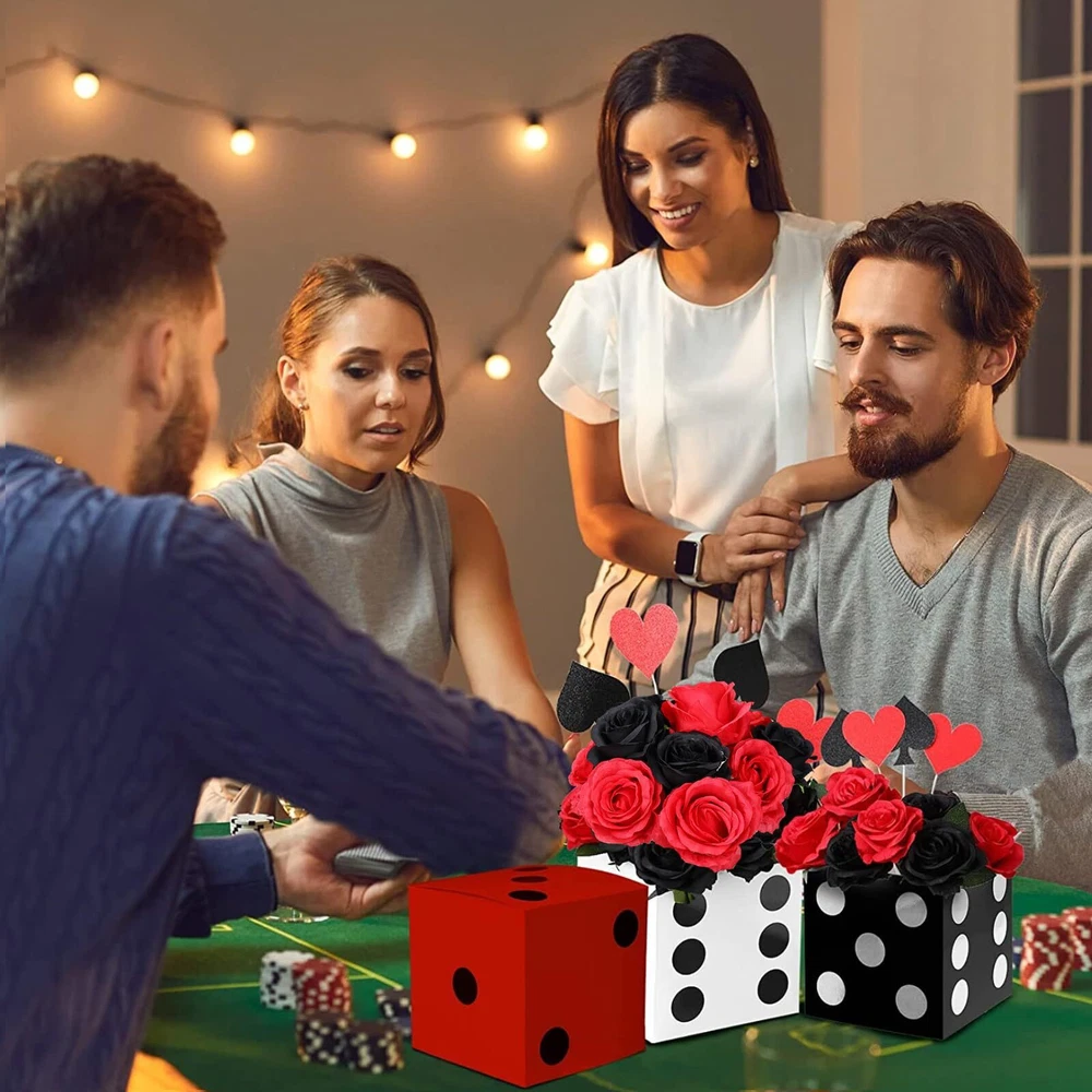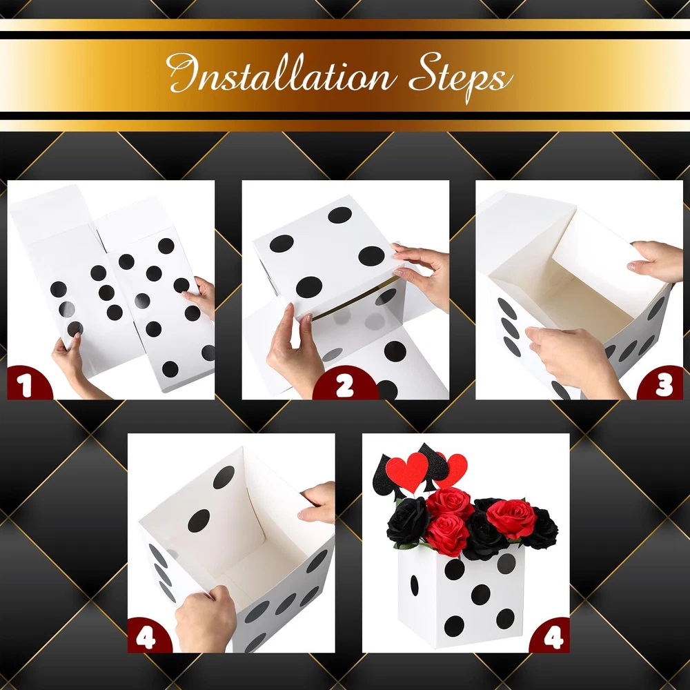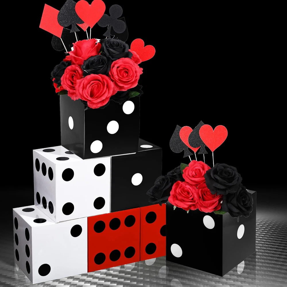 Sinmoe 6 Pcs Casino Dice Favor Boxes Bulk 7 x 7 x 7 Inch Casino Themed Party Supplies Night Las Vegas Party Decoration Three Dimensional Dice Decor for New Year Centerpieces Game(Multicolored) Features: Novelty presents: You can send the casino dice boxes to your mates, siblings and neighbors who want to hold game night parties or always play casino themed games, which can help them to decorate their party scene and make for a great accent around their house. Nice craft props: People can use cardboard dice boxes to make some creative crafts with their family members and mates, which can not only inspire their imagination and operational ability, but can improve their relationship. Specifications: Material: thick cardboard Color: black, white, red Size: about 7 x 7 x 7 inches Package includes: 6 x Dice favor boxes Notes: Manual measurement, please allow slight errors on size. The color may exist a slight difference due to different screen displays. A Variety of Display: the casino dice party favor box can be stacked together as table decorations or game props for casino theme party decorations; You can also put some beautiful flowers or other small things on it as special game night las vegas party supplies; Notes: without flower and accessory Proper Sizes: the casino favor boxes measure about 7 x 7 x 7 inches, are appropriate for you to put in every corner of your home or room, making these places more attractive and adding a sense of fun; Please check the size before placing the order Casino Theme Party Decorations: the package comes with 6 pieces of casino dice goodie boxes, which do not include the internal products; The quantity is enough for you to make some casino party table decorations, meeting your various decorative demands Wide Decoration Scene: our casino dice card box is ideal for many occasions, such as las vegas party, casino themed parties, Birthday parties, festivals, holidays, carnivals and so on, which is a fabulous addition to the party celebration Quality and Serviceable: made of reliable thick cardboard, the casino theme party decorations are lightweight and not easy to break or fade, easy for you to assemble and disassemble them, reusable and long lasting, can serve you for a long time Shipping from the USA All of our products are shipped from the USA, ensuring quick delivery to your destination. Payment We offer the following payment methods: PayPal, credit card, bank transfer, and eBay's secure payment system. Free Shipping & Free Returns Shipping within the USA is FREE. Additionally, any return is absolutely free for you. Risk-Free Purchase You have the option to return an item within 30 days without any justification. We cover the return shipping costs! Fast Shipping We ship immediately upon receipt of payment. Generally, the package is delivered within 2-3 days in the USA. If it takes longer, we will contact you. Quality and Costs Made in Europe, USA, China No customs fees or additional charges Total satisfaction guarantee Invoice with declared VAT available upon request in .pdf format Feedback Your feedback is very important to us. After you pay for your purchase, you will automatically receive positive feedback from us.