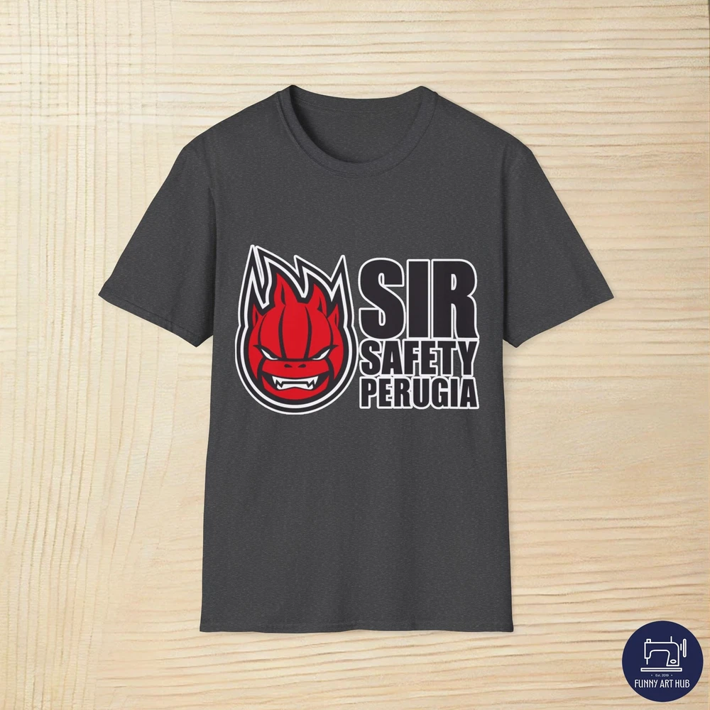 Sir Safety Perugia Volleyball Team Logo is a funny and cool gift for men, women and kids who love Sir Safety Perugia, Volleyball, Team, Sports, Champions, Competitive, Club, Tradition, Pride, Spirit, Legacy, Fans, Game, Custom, Popular, Elite, Signature, Graphic, Icon, Design, Symbol, Branding, Logo PRODUCT DESCRIPTION The unisex soft-style t-shirt puts a new spin on casual comfort. Made from very soft materials, this tee is 100% cotton for solid colors. Heather colors and sports grey include polyester. The shoulders have twill tape for improved durability. There are no side seams. The collar is made with ribbed knitting to prevent curling damage. .: Made with 100% ring-spun cotton, a lightweight fabric (4.5 oz/yd² (153 g/m²)), this unisex t-shirt feels like a bliss to wear all year round. .: The classic fit with the crew neckline deliver a clean, versatile style that can match any occasion, whether it's formal or semi-formal. .: All shirts feature a pearlized, tear-away label for total wearing comfort. .: Made using ethically grown and harvested US cotton. Gildan is also a proud member of the US Cotton Trust Protocol ensuring ethical and sustainable means of production. This blank tee is certified by Oeko-Tex for safety and quality assurance. .: Fabric blends: Heather colors - 35% ring-spun cotton, 65% polyester; Sport Grey and Antique colors - 90% cotton, 10% polyester, Graphite Heather - 50% ring-spun cotton, 50% polyester SIZE GUIDE Imperial S M L XL 2XL 3XL Width, in 18.00 20.00 22.00 24.00 26.00 28.00 Length, in 28.00 29.00 30.00 31.00 32.00 33.00 Sleeve length, in 8.23 8.50 8.74 9.02 9.25 9.49 Size tolerance, in 1.50 1.50 1.50 1.50 1.50 1.50 Metric S M L XL 2XL 3XL Width, cm 45.72 50.80 55.88 60.96 66.04 71.12 Length, cm 71.12 73.66 76.20 78.74 81.28 83.82 Sleeve length, cm 20.90 21.60 22.20 22.90 23.50 24.10 Size tolerance, cm 3.81 3.81 3.81 3.81 3.81 3.81