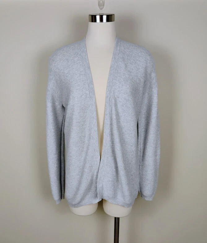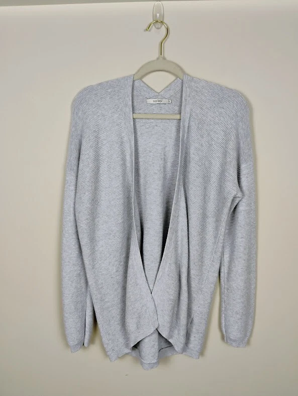Sissy Boy is a contemporary brand from Belgium. This cardigan is made from organic cotton in a relaxed open front style. It features a unique v-back on the neckline, horizontal ribbed texture, balloon sleeves with banded cuffs. Has dropped shoulders for that slouchy, boyfriend sweater look. Made in Amsterdam. SIZE: Small COLOR: Gray FABRIC CONTENT: 100% Organic Cotton STYLE: Open Front CARE: Machine wash inside out, dry flat CONDITION: Excellent pre-owned condition with no fading, stains, or holes/tears. Please see photos for details. FLAT MEASUREMENTS (approximate) Underarm to Underarm: 22" Shoulder to Hem: 28" Sleeve Length: 21.5" from dropped shoulder seam If you have any questions, please don’t hesitate to ask. Thanks for viewing our listing! Oversized, baggy, sustainable, neutral, warm, capsule