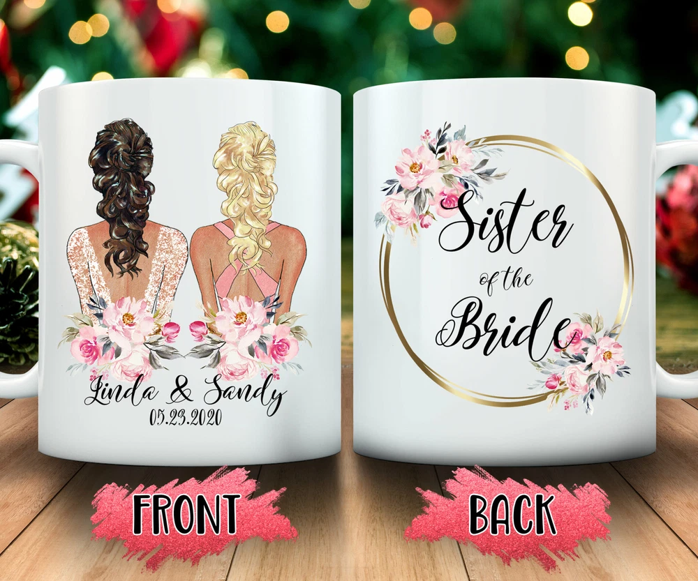 Sister Of The Bride Mug Maid Of Honor Gifts Personalized Custom Sister Name Product Details.. This high quality 11oz. ceramic white mug has a premium hard coat that provides crisp and vibrant color reproduction sure to last for years. Perfect for all hot & cold beverages. The highest quality printing possible is used. It will never fade no matter how many times you wash it. Material: 100% Ceramic. Print both sides. Dishwasher and Microwave Safe. High Gloss + Premium White Finish. Printed in the U.S.A. Personalized & Custom. We support personalized and custom mug to add custom, when placing an order, you can add notes to the "order note" in shipping address section. Also you can contact us directly via message. Shipping Info. Ready to ship in 1 to 2 business days, All products are made-to-order and proudly printed in the United States. Shipped by USPS and DHL, You will receive your order in 5-7 days. Replace & Refund. All products are defective during shipping broken, chipped will be replaced free of charge. You are not satisfied with the product, we will refund 100% money to you. If any other issues arise, please do not hesitate to message, we would be more than happy to assist you.