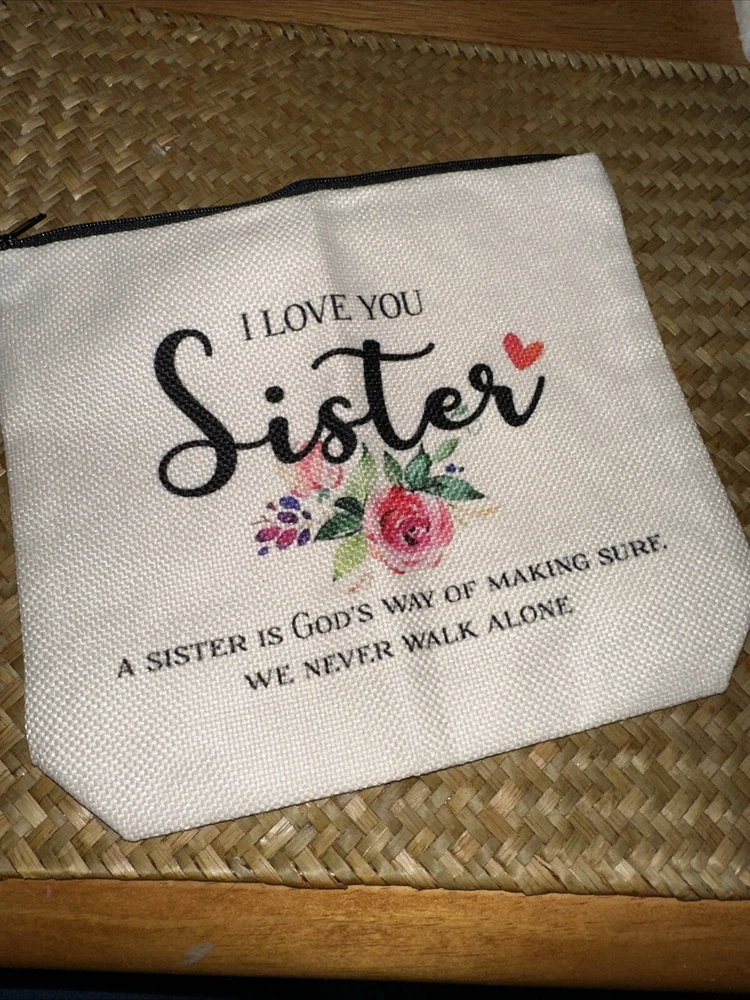 Sisters Faith Based, Makeup/bible/trinket Burlap Bag, New.