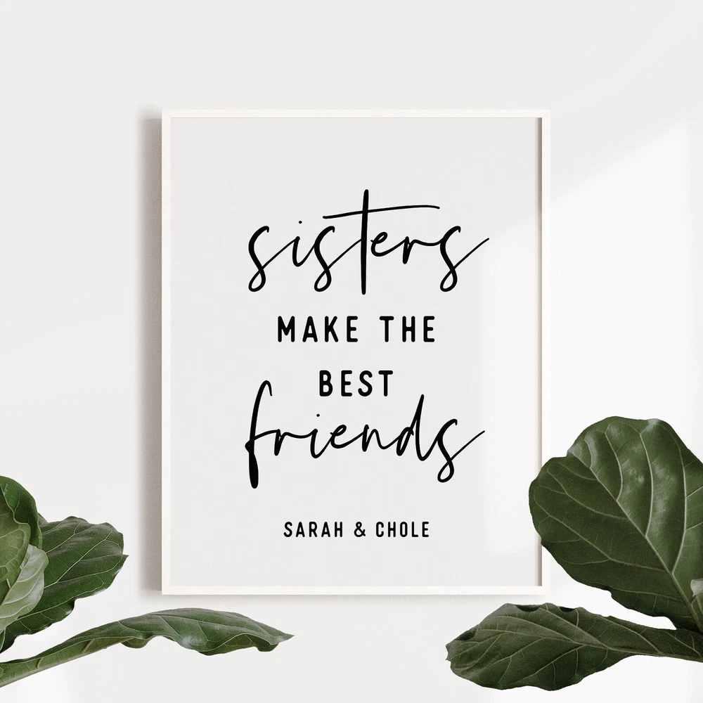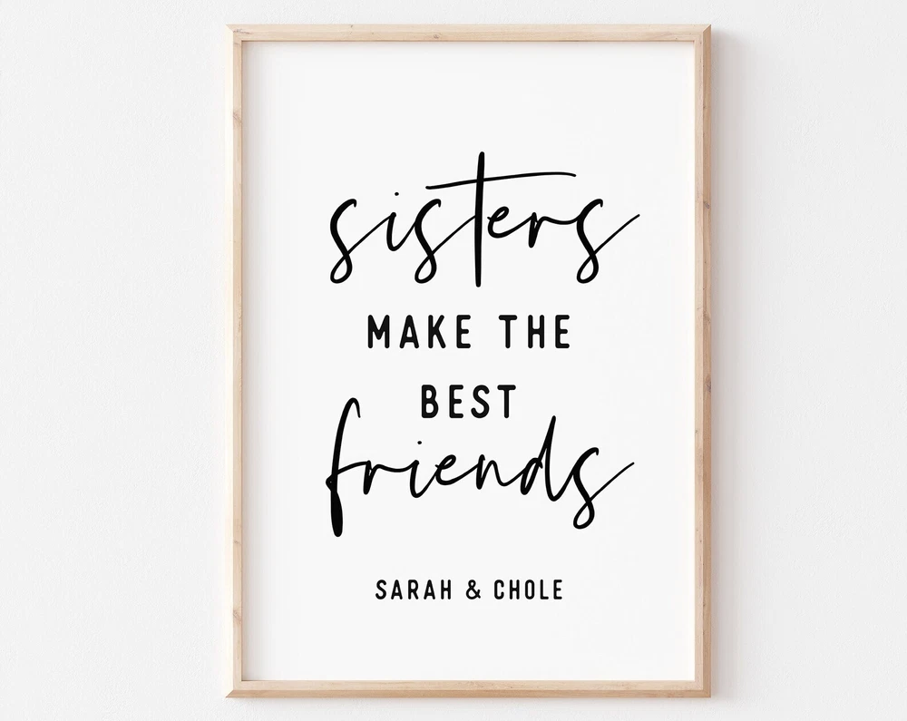 Sisters Make The Best Friends Print Printable Wall Art Girl Bedroom Decor Sister Quote Wall Art Personalized Gift Sisters Art Material: Premium luster photo paper Print type: Inkjet printing One side printed + The finish provides the highest possible resolution and color saturation + Lasts up to 200 years in color and 400 years in black-and-white + Printed on high-quality resin-coated photo base paper medium + Posters can be hung with double-sided tape, tacks, or framed + Hand washing with a gentle cry cloth is recommended for extended durability I will hand select the best choice of paper for your chosen design to ensure top quality results for a beautiful, bright and luxurious print. All prints are sealed in cellophane slips for protection during transportation, and are shipped in a protective cardboard envelope.