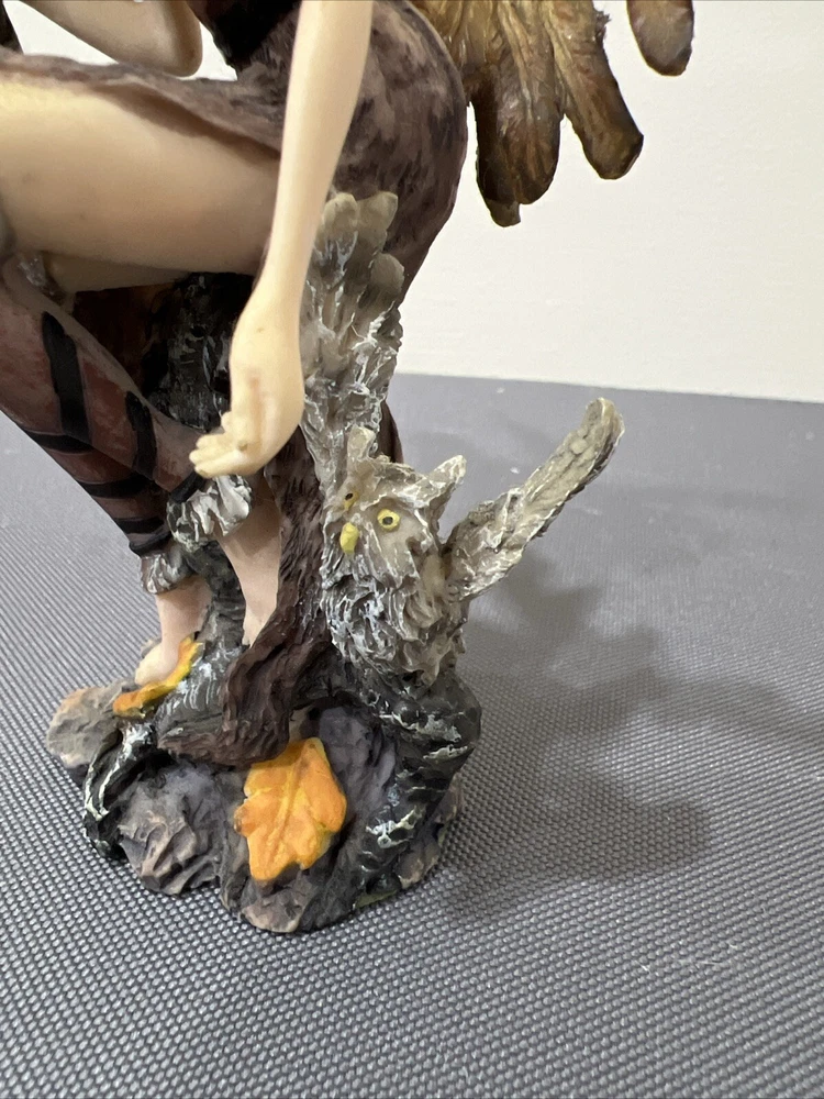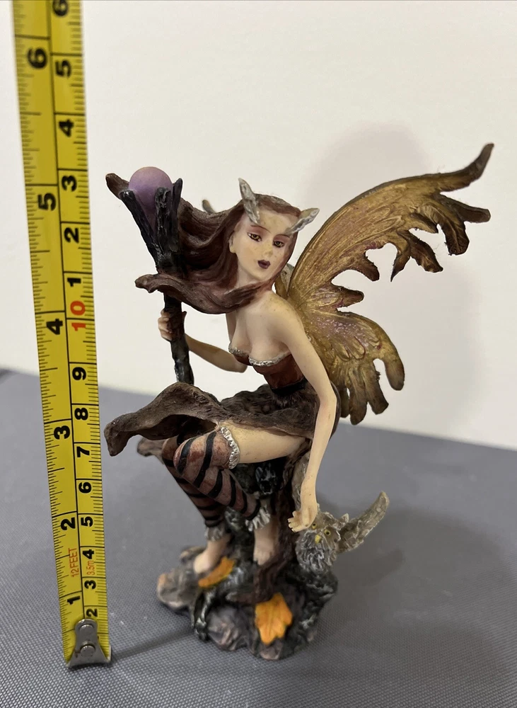 Add a touch of magic to your collection with this enchanting sitting fairy figurine. The fairy is depicted with an owl perched on her shoulder, holding her staff of power. Crafted from durable polyresin, this figurine is perfect for display in any fantasy or mythical collection. The intricate details of the fairy's attire and the owl's plumage make this a true work of art. This fairy figurine is perfect for those who love all things magical and mythical. The weight of the figurine is approximately 1 lb, and it is not handmade or modified in any way. The genre of the figurine is fantasy, and it is sure to be a great addition to any collection. Please see pictures for condition. Selling as is. Please add me to your list of favorite sellers and visit often as we are always adding new items.