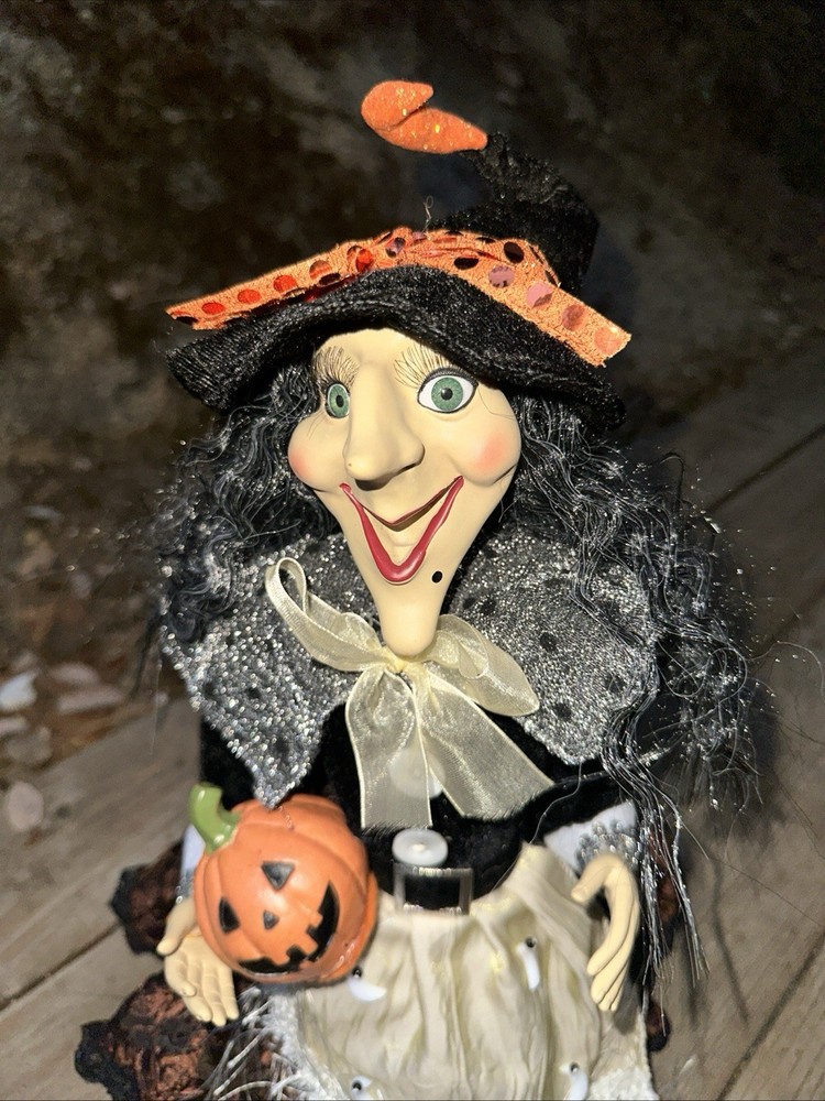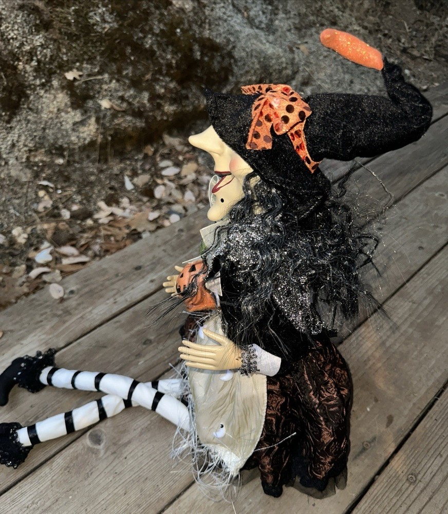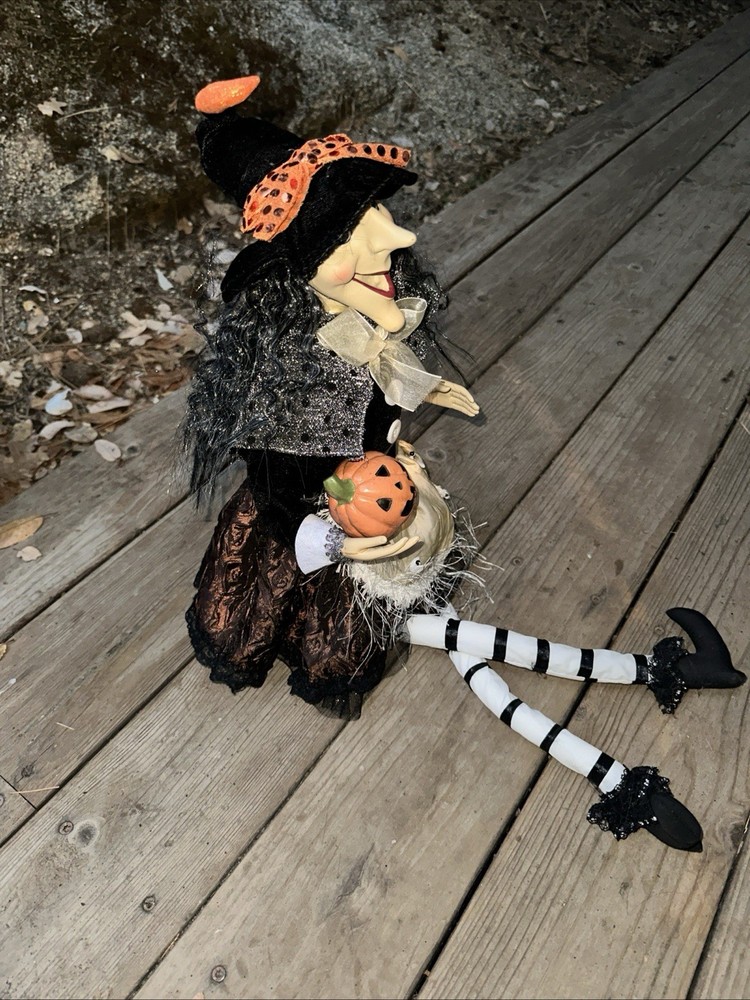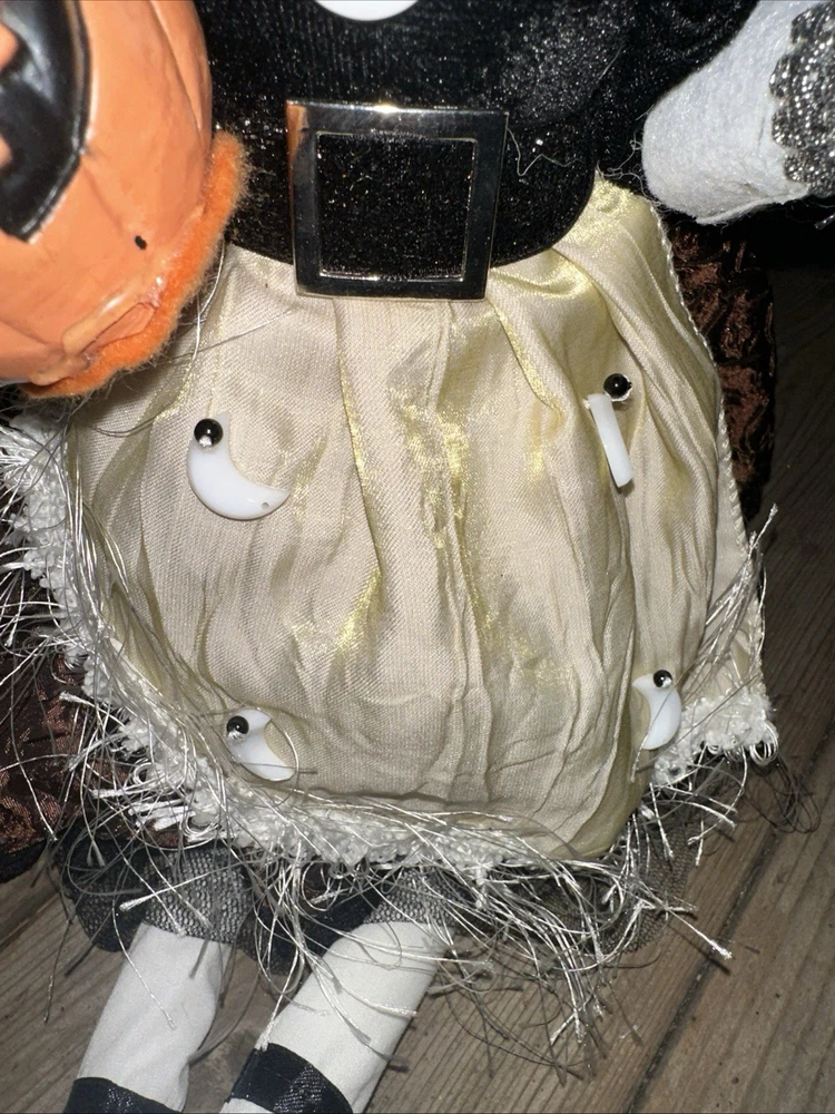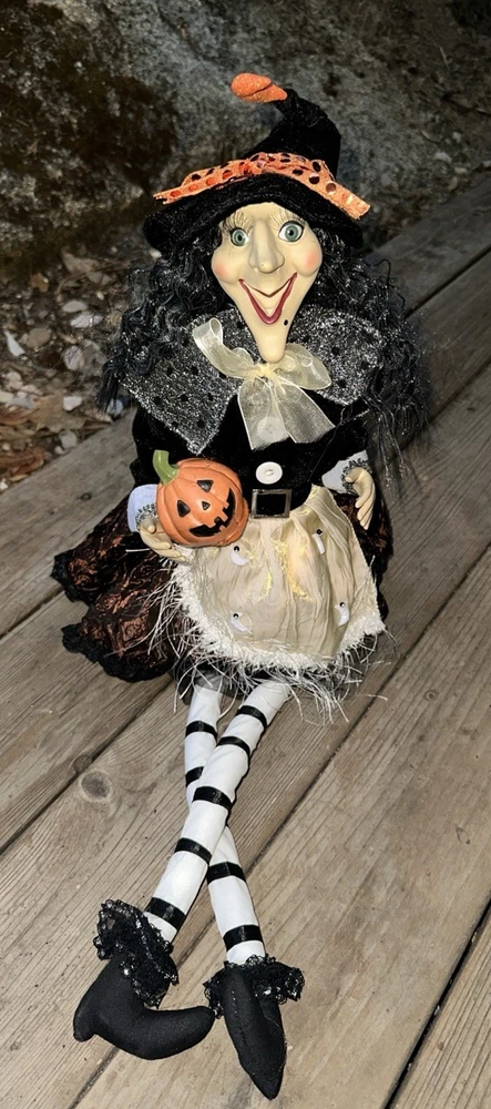 Sitting Halloween Gal Pal Pumpkin Moon Witch w/long Leg 26โ Folk Art Blk/white Adorable Halloween sitting pumpkin moon witch. Black and white dress Please see pictures Thank you for looking ๐
