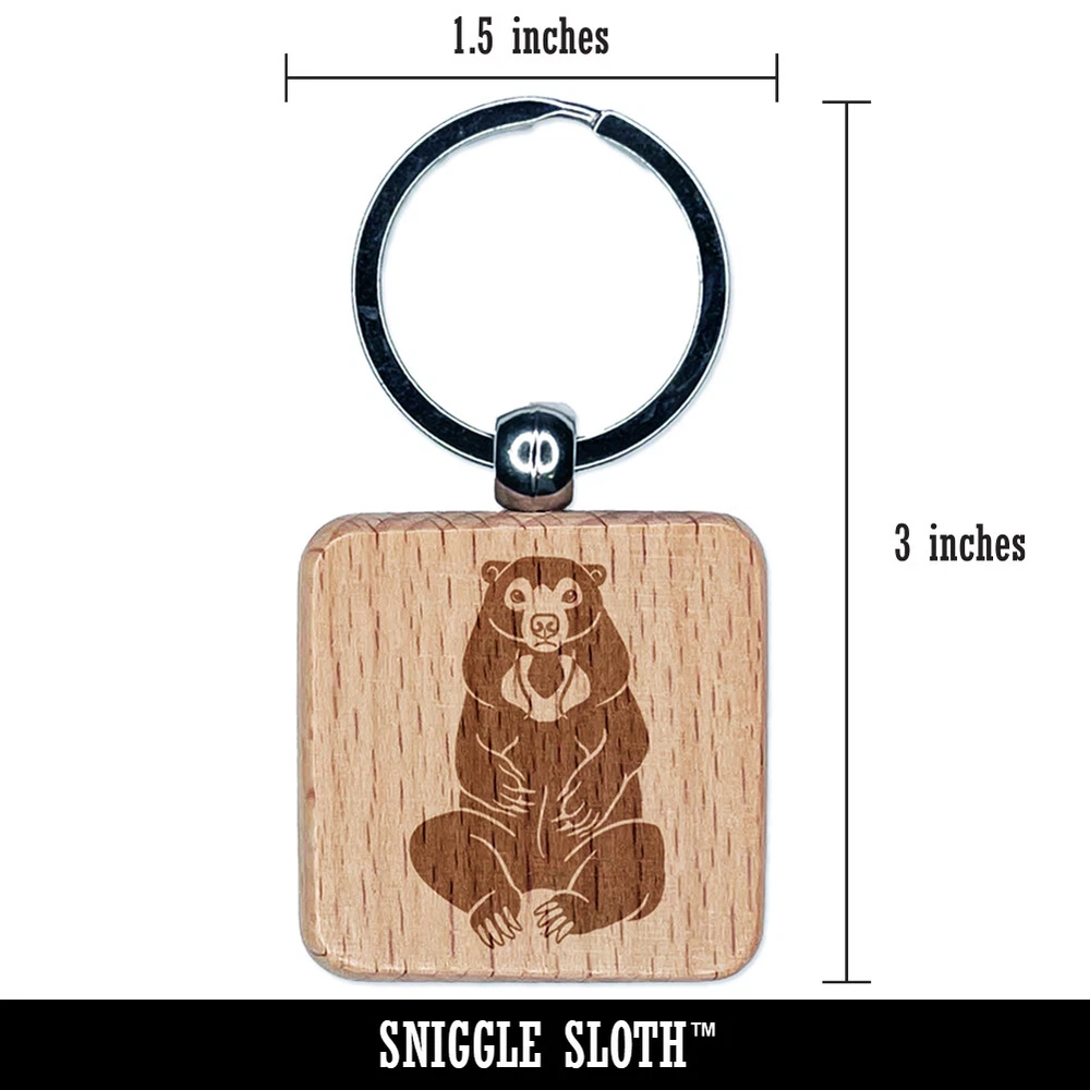 Sitting Malayan Sun Bear Engraved Wood Square Keychain Tag Charm