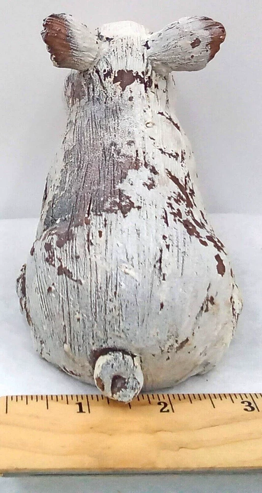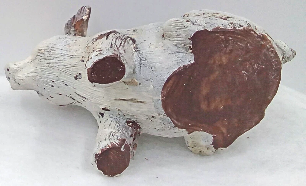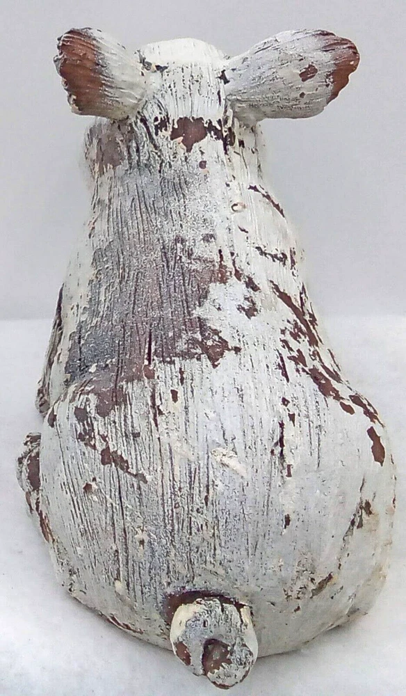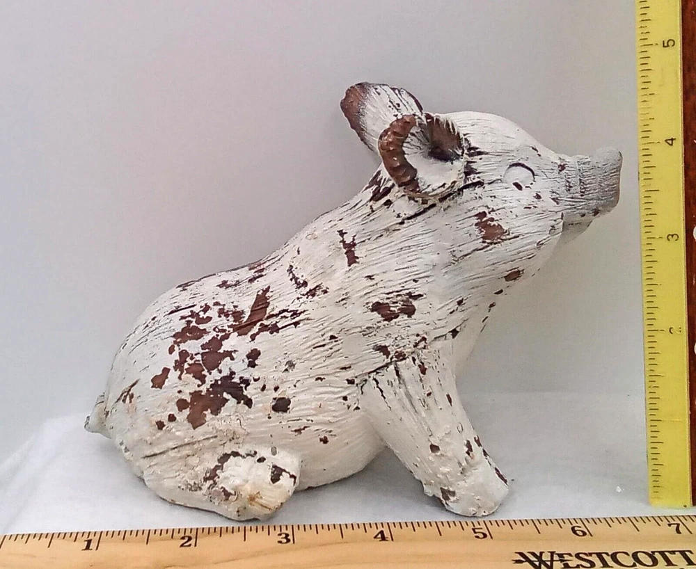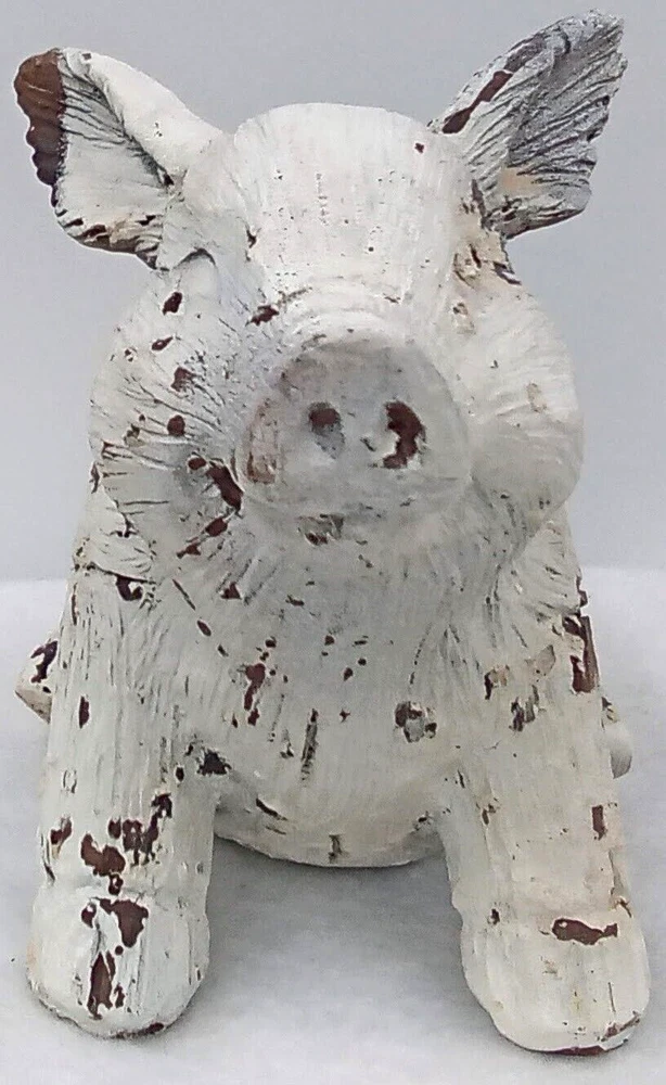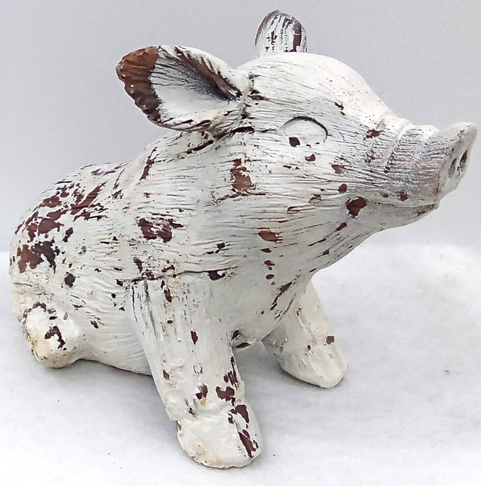 Sitting Pig Figurine Resin White Weathered Distressed Rustic Snout Farm Animals