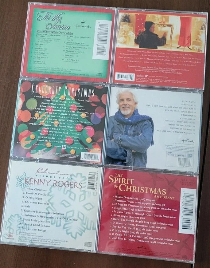 6 Christmas CDs including Hallmark Tis the Season and The Spirit of Christmas Hallmark Tis the Season - Vince Gill & Olivia Newton-John, The Christmas Shoes - New Song, Celebrating Christmas - various artists, Through the Many Winters: A Christmas Album - Michael McDonald, Christmas Wishes - Kenny Rogers and Hallmark The Spirit of Christmas - Amy Grant 93-year-old selling her collection. Returns accepted if returned in same condition as was received. If purchasing more than one of my listings at the same time, I will ship all items together and issue you a partial refund for the difference in shipping cost paid and the actual shipping cost.