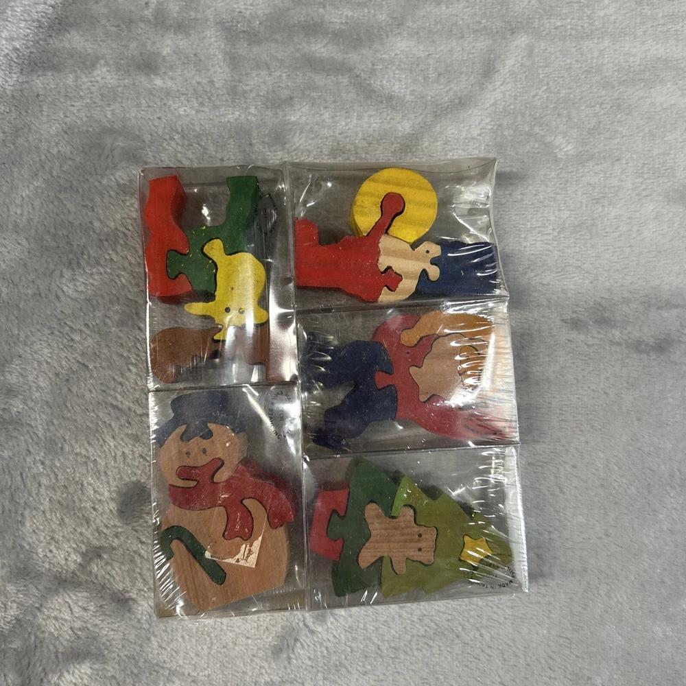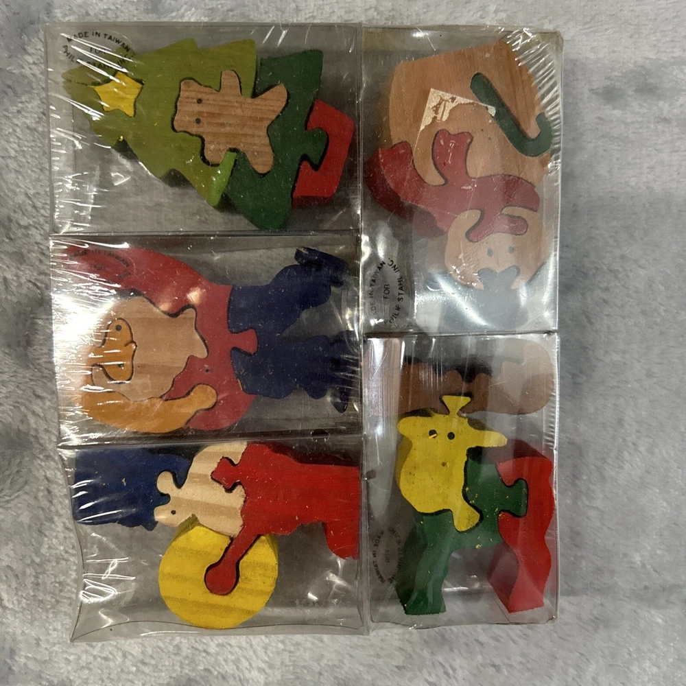 This wooden puzzle set from Philip Stahl is perfect for any Christmas enthusiast. The multi-colored pieces feature various festive designs, all made from wood. Manufactured in Taiwan, this puzzle set is sure to bring hours of entertainment and joy. Whether you're a puzzle collector or just looking for a fun holiday activity, this set is a must-have.