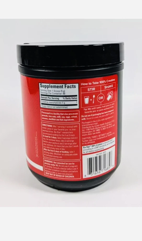 Six Star Creatine Unflavored 10.58 Oz Exp 12/25