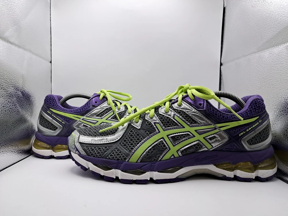 Condition: New With Defects Size: 10.5 Flaws: Bottom Soles Has A Little Dirt & Back Of Heel I.G.S Is Sucff Elevate your running game with these stylish and comfortable ASICS GEL-Kayano 21 running sneakers in a beautiful shade of purple. These sneakers are perfect for any active woman looking for a comfortable and breathable shoe with a touch of modern style. The lace-up closure and low-top shoe shaft style provide a secure and comfortable fit, while the rubber outsole offers excellent traction and durability. The ASICS GEL-Kayano 21 model is part of the ASICS GEL product line, known for its exceptional quality and performance. These sneakers are handmade in China with a solid pattern and accents of a logo and lace. The foam insole material provides ultimate comfort, making them perfect for running and jogging in any season. Get ready to step up your athletic game with these amazing ASICS GEL-Kayano 21 running sneakers!