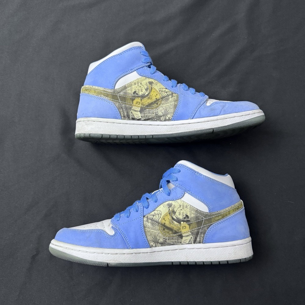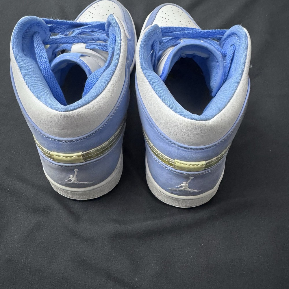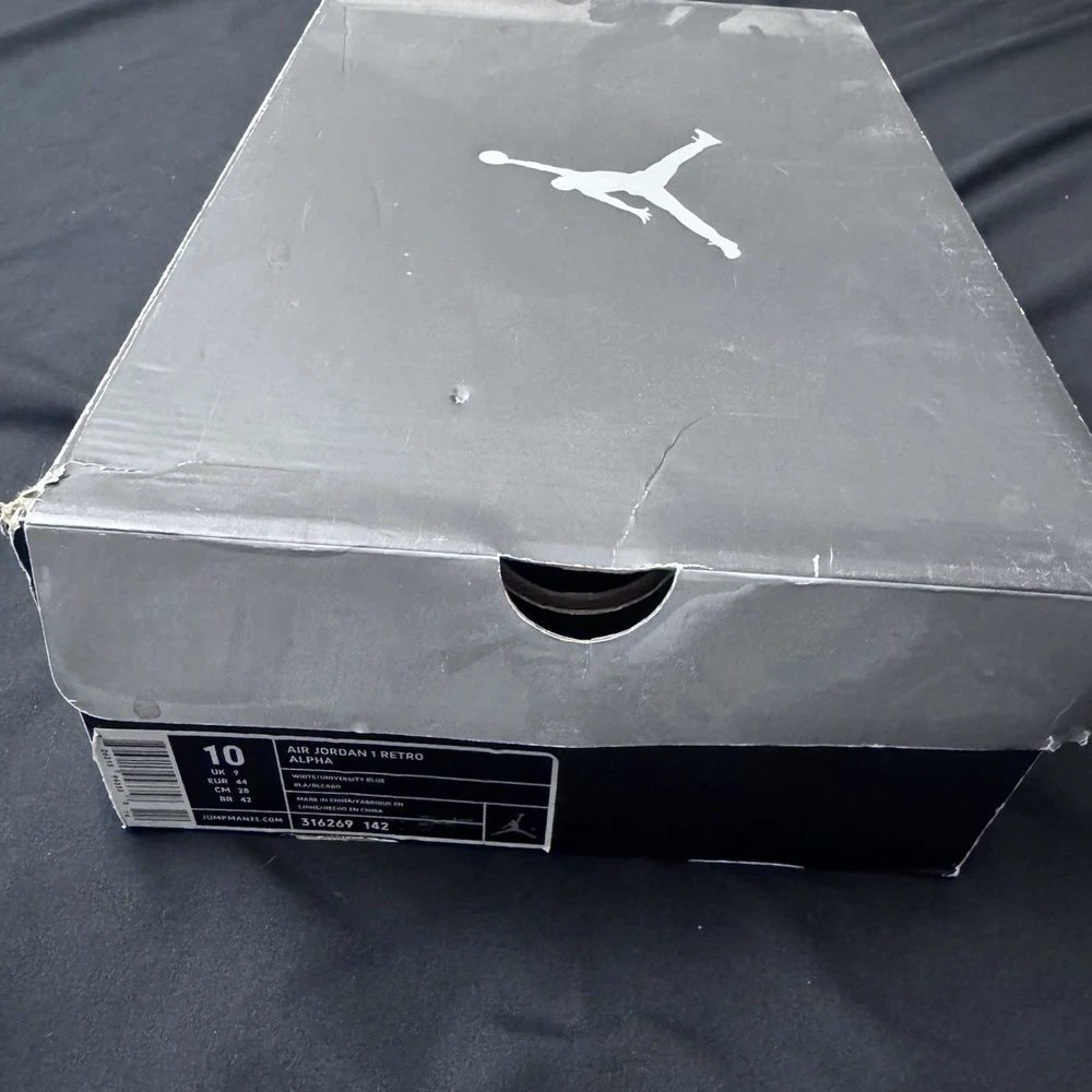 The product is a Size 10 Air Jordan 1 Retro Alpha White University Blue, featuring a lace-up closure and crafted with leather upper material. This limited edition sneaker from 2007 offers comfort and breathability with cushioned soles, making it suitable for activewear and casual occasions. With its iconic colorblock pattern and Jordan Retro 1 silhouette, this shoe pays homage to Michael Jordan and the basketball theme, making it a must-have for Jordan enthusiasts looking for a vintage and stylish addition to their sneaker collection.