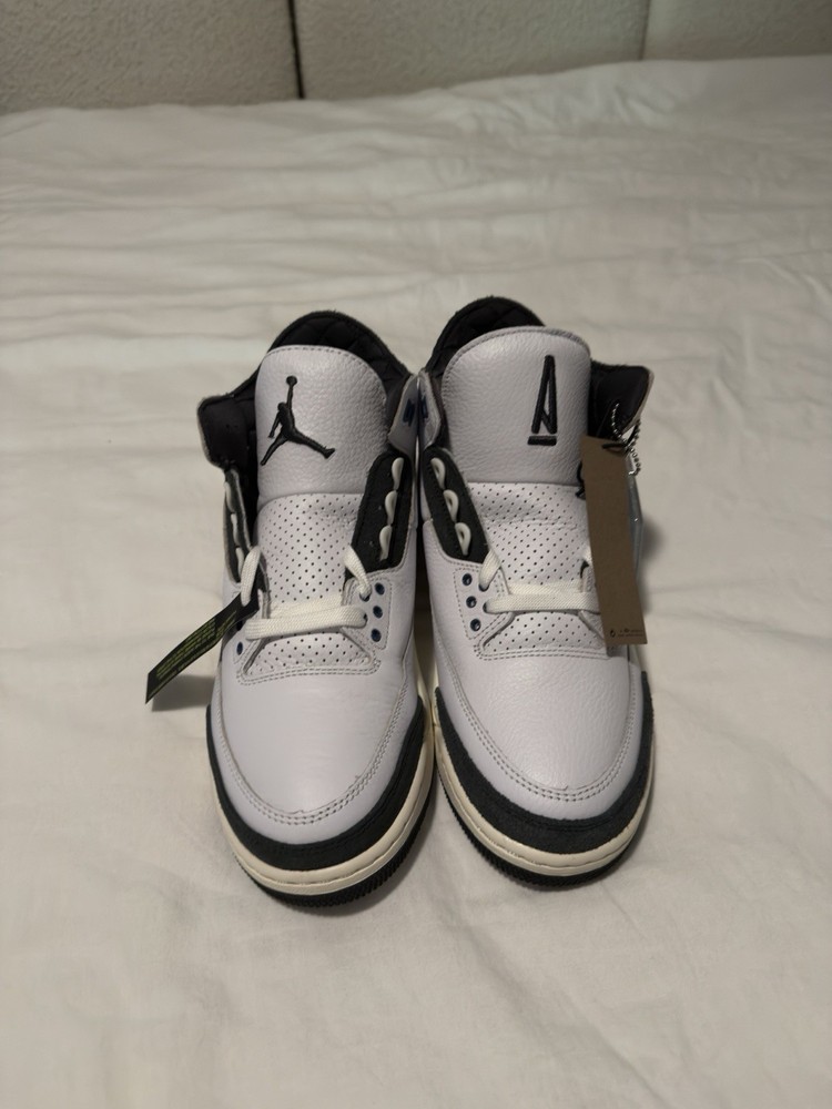 Step into style with the Jordan 3 Retro OG SP A Ma Maniere - For The Love Diffused Blue, a sneaker that embodies the spirit of retro basketball with modern comfort. The sleek white leather upper, complemented by the iconic diffused blue accents, offers a striking look that's sure to turn heads. With a foam insole and cushioned lining, these mid-top sneakers provide all-day comfort, perfect for both on and off the court. The Air Jordan 3 Retro is a staple for any sneaker enthusiast, featuring the signature lace-up closure and durable rubber outsole designed for superior traction. Ideal for a range of occasions, from activewear to casual workdays, this limited edition pair, styled with the code HV8571-100, unites style and performance. Whether you're a basketball player or a fashion-forward individual, these sneakers are crafted to elevate your wardrobe.