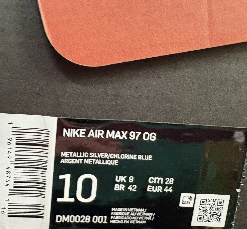 HomeSize 10 - Nike Air Max 97 OG Metallic Silver Chlorine Blue mens