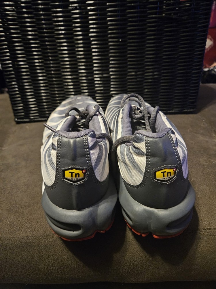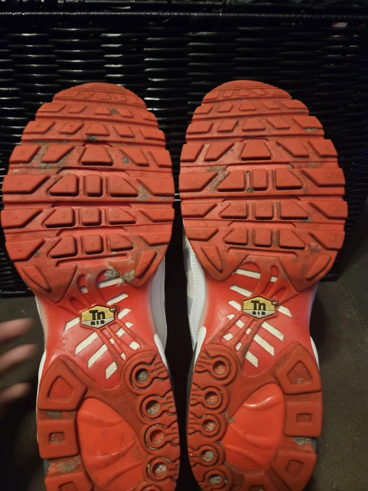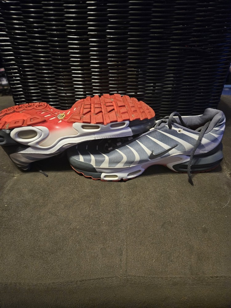 The product is a pair of Nike Air Max Plus sneakers in size 10, released in 2019. These athletic shoes are part of the Nike Air Max product line and feature a stylish white colorway. The model is designed specifically for men and includes the iconic Air Max cushioning technology for comfort and support during physical activities. The style code for this particular model is AQ0237-100, making it easily identifiable for fans of Nike footwear. NO BOX NO insoles