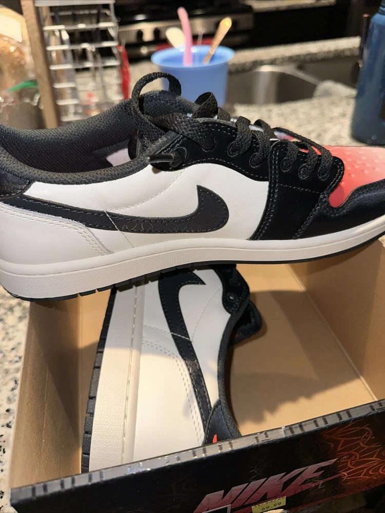 Step up your sneaker game with the Size 8.5 Paris Saint-Germain x Air Jordan 1 Retro OG Low Sail Pink Oxford. This stylish and comfortable sneaker features a Low Top Shoe Shaft Style and a Jordan 1 Retro Low Silhouette, perfect for any athletic occasion. The sneaker is made with high-quality Leather Upper Material and boasts a striking Red Color that is sure to turn heads. The Air Jordan 1 model has been a fan favorite since its introduction in 1992, and this collaboration with Paris Saint-Germain adds a unique touch to the iconic design. With a Style Code of HF8828-100 and a US Shoe Size of 8.5, this sneaker is perfect for any man who wants to make a statement with their footwear. Whether you're hitting the basketball court or just running errands around town, the Air Jordan 1 Retro OG Low Sail Pink Oxford is a must-have addition to your sneaker collection.