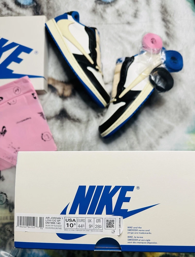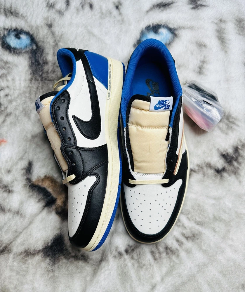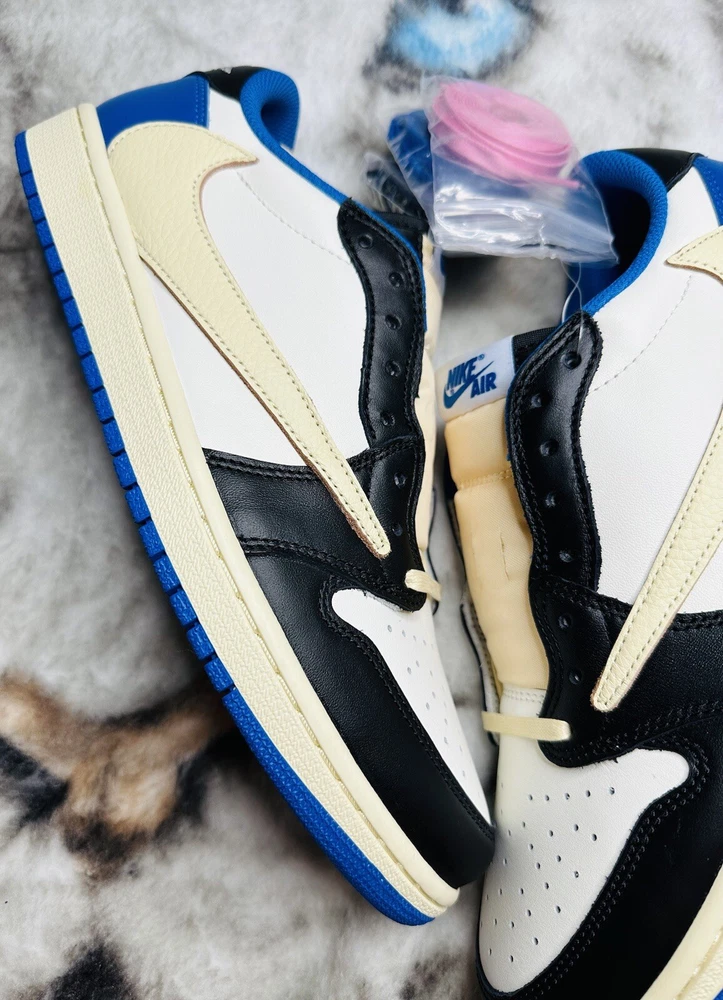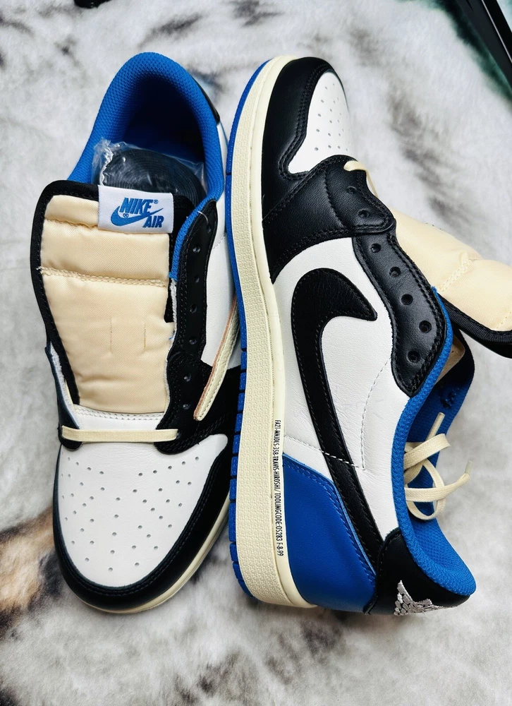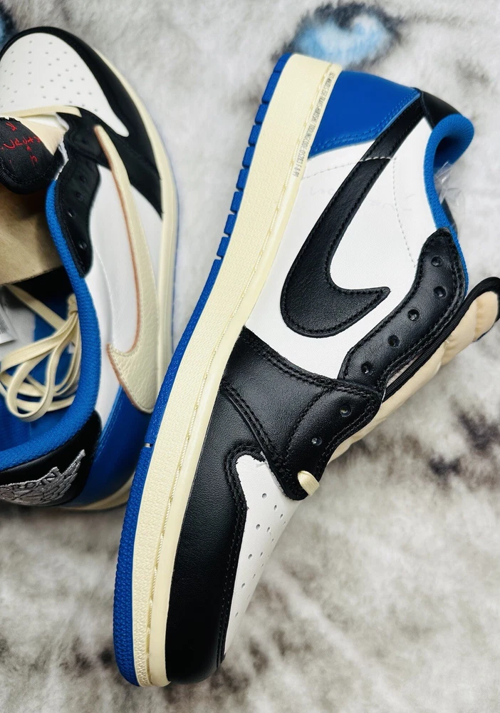 Shoe Width: Standard UK Shoe Size: 10 Lining Material: Fabric US Shoe Size: 10.5 Closure: Lace Up Outsole Material: Rubber Theme: Retro Upper Material: Leather Type: Athletic Season: Fall, Spring, Summer Style Code: DM7866-140 Pattern: Solid Color: Blue Silhouette: Air Jordan 1 Low Fragment Design x Travis Scott Style: Sneaker Release Year: 2021 Customized: No Year Manufactured: 2021 Performance/Activity: Basketball Product Line: Air Jordan Character: Michael Occasion: Activewear, Casual Model: Air Jordan 1 Low Brand: Jordan Vintage: No Signed: No EU Shoe Size: 44.5 Department: Men Country/Region of Manufacture: China Shoe Shaft Style: Low Top Features: Adjustable Insole Material: Foam