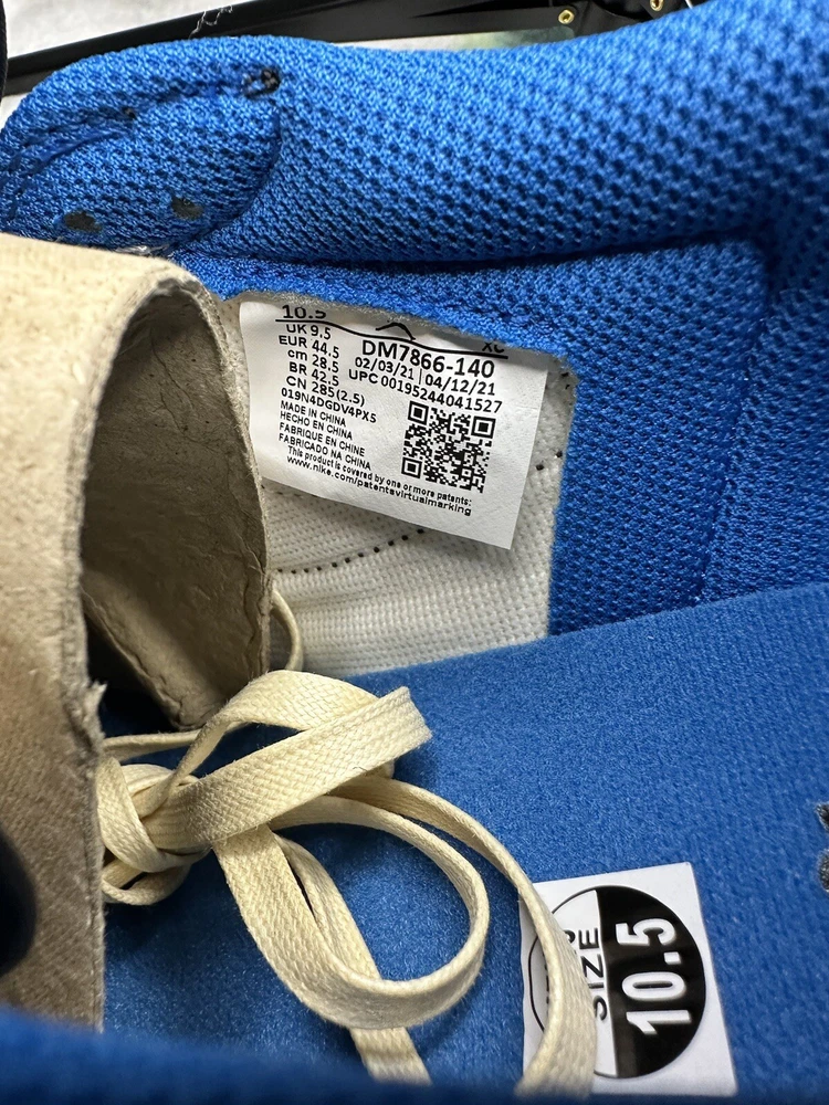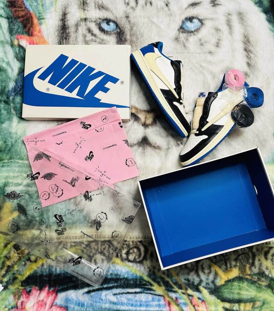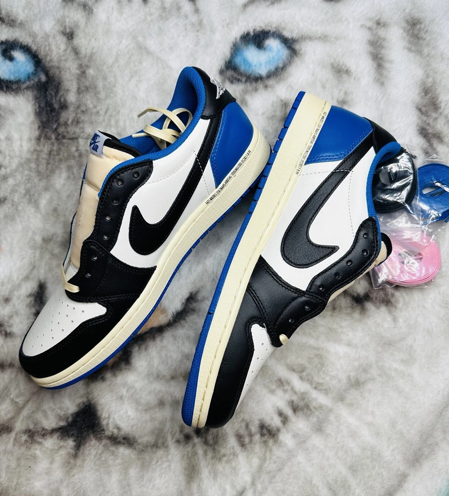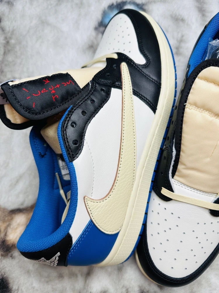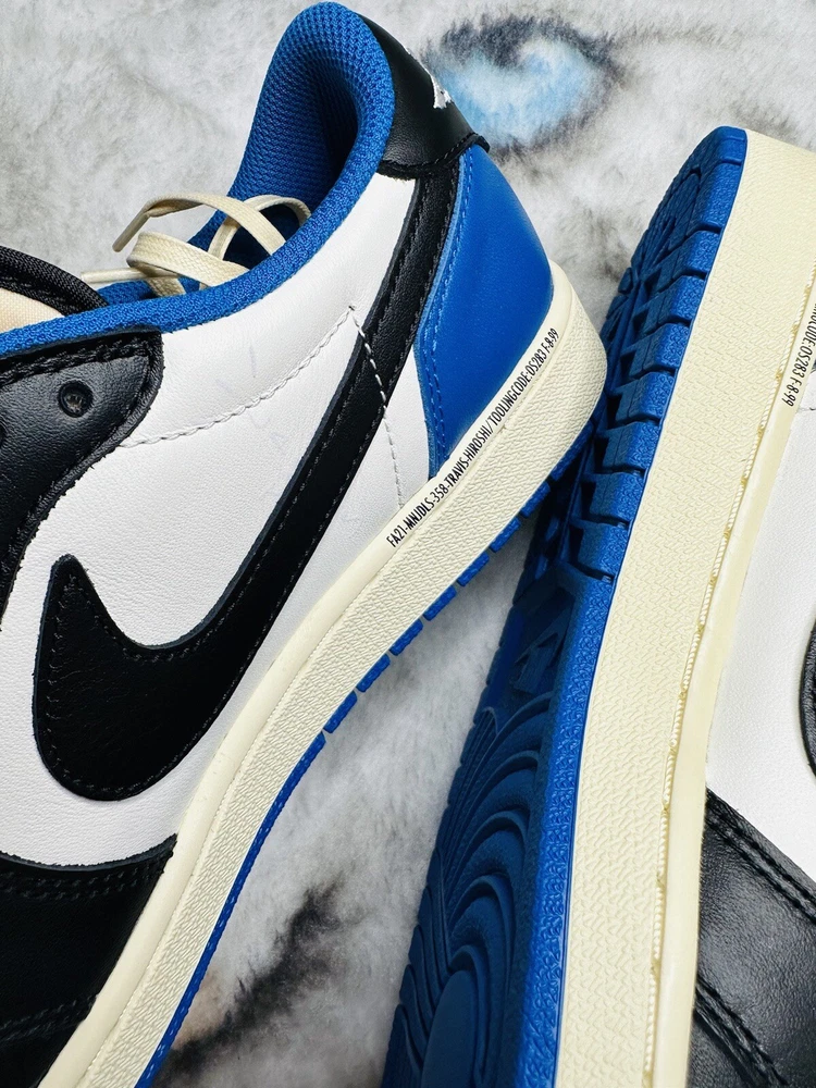Shoe Width: Standard UK Shoe Size: 10 Lining Material: Fabric US Shoe Size: 10.5 Closure: Lace Up Outsole Material: Rubber Theme: Retro Upper Material: Leather Type: Athletic Season: Fall, Spring, Summer Style Code: DM7866-140 Pattern: Solid Color: Blue Silhouette: Air Jordan 1 Low Fragment Design x Travis Scott Style: Sneaker Release Year: 2021 Customized: No Year Manufactured: 2021 Performance/Activity: Basketball Product Line: Air Jordan Character: Michael Occasion: Activewear, Casual Model: Air Jordan 1 Low Brand: Jordan Vintage: No Signed: No EU Shoe Size: 44.5 Department: Men Country/Region of Manufacture: China Shoe Shaft Style: Low Top Features: Adjustable Insole Material: Foam