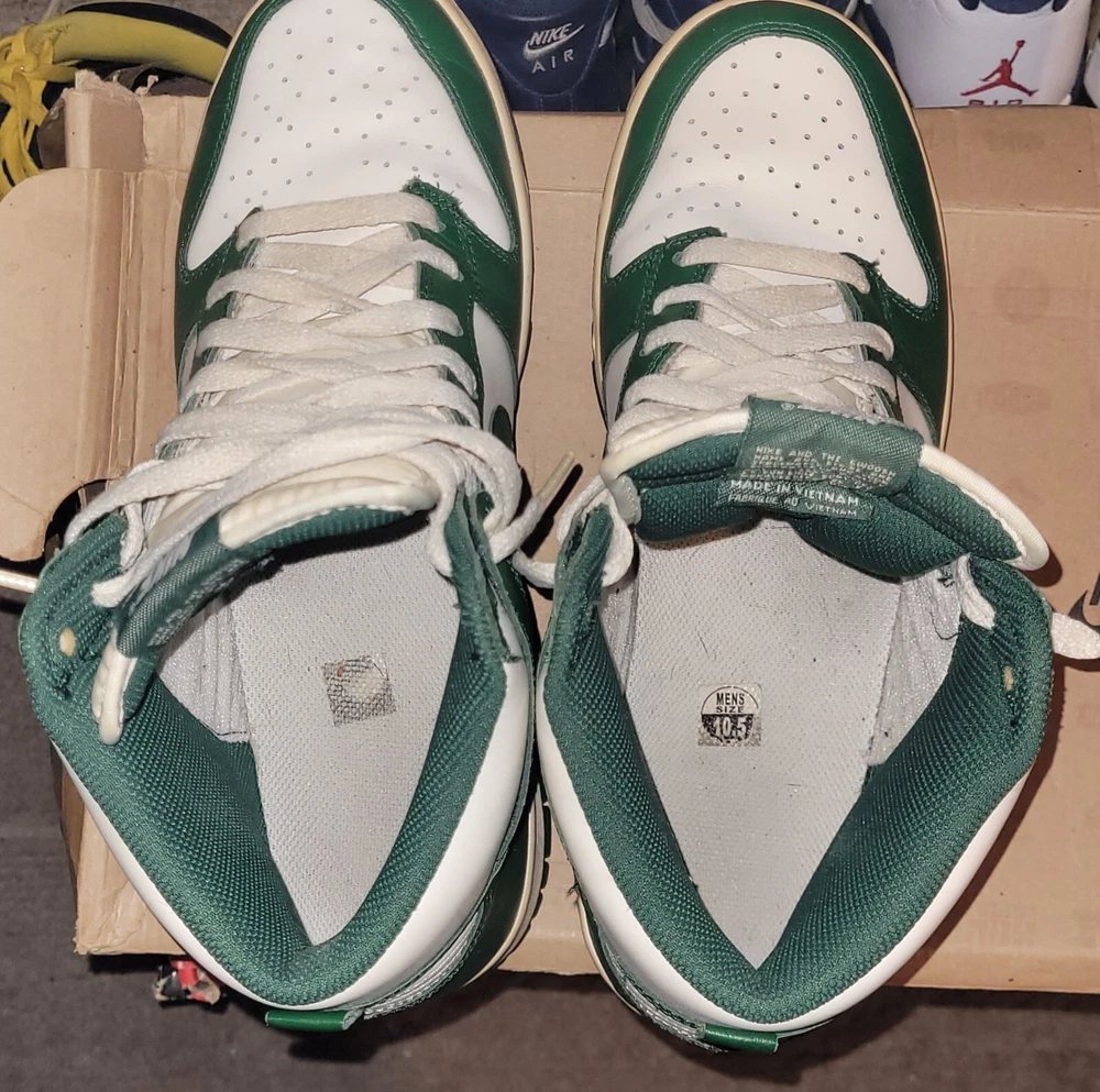 Style: Sneaker Color: Green US Shoe Size: 10.5 Product Line: Nike Dunk Release Year: 2012 Shoe Shaft Style: High Top Brand: Nike Type: Athletic Department: Men Style Code: 317982-119 Model: Nike Dunk