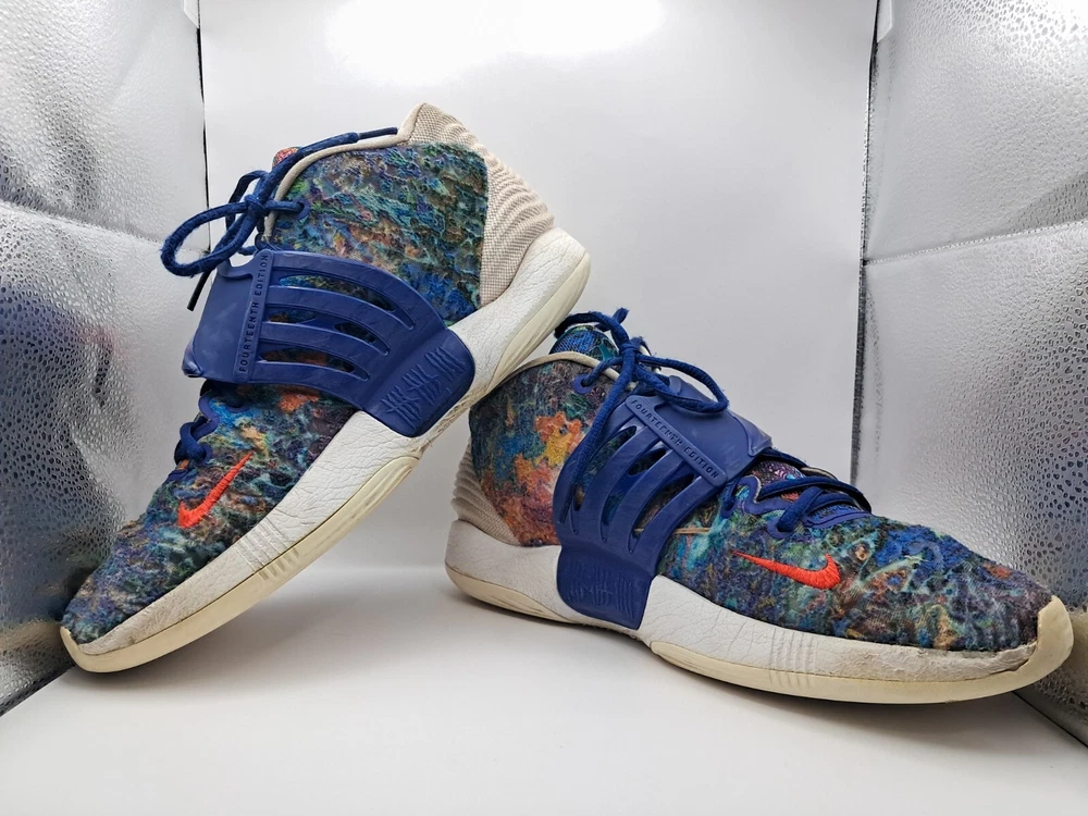 Condition: Pre Owned Size: 11 Flaws: No Insole & Heel Drag Elevate your game with the Nike KD 14 Psychedelic Kevin Durant Basketball Shoe. This limited edition sneaker boasts a colorful, solid pattern and a low top shoe shaft style. The shoe features lace-up closure, adjustable fit, breathable material, and a cushioned insole for ultimate comfort. Perfect for any occasion, whether it's activewear, casual wear, or workwear, these shoes are ideal for men who want to showcase their athletic side. With a rubber outsole and foam insole, these shoes provide excellent traction and support. The Nike KD 14 is part of the Nike KD product line and is designed to be a high-performance shoe for gym and training, track and field, weightlifting, boxing, cross training, crossfit, basketball, bodybuilding, running, and jogging.