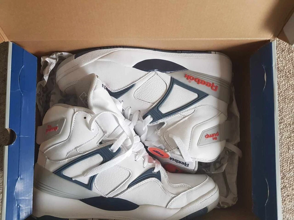 New in Box. The commemorative 2014 release, the 25th anniversary of the Reebok Pump. Has the original design cues including the Pump hang tag, white colorway based on the original 1989 release. Popular in the NBA and streets since the late 1980s. And iconic shoe, this is like the jordan of reebok. As in pictures. Ask questions. Shipping from New Zealand with tracking/insurance. Will be listing more shoes soon.
