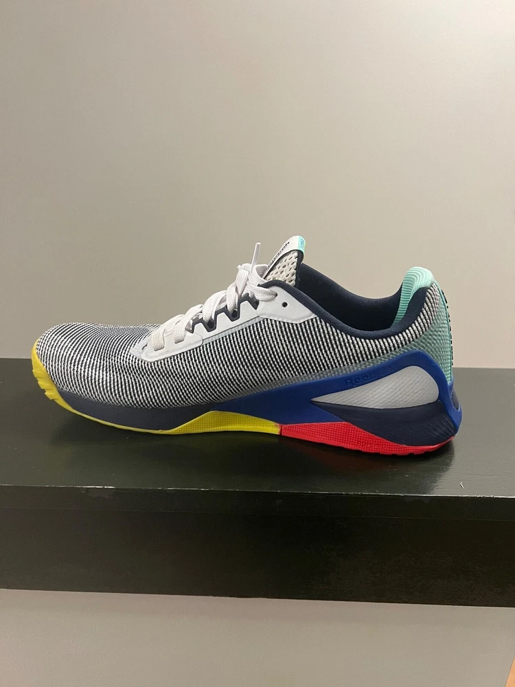 Elevate your training game with these Reebok Nano X1 Grit sneakers. Designed for men, these athletic shoes boast a multicolor style with a white base color and feature a Flexweave upper material that ensures a comfortable and durable fit. The sneakers come in a US shoe size 12 and have a style code of GX4054. These Reebok Nano X1 Grit sneakers are perfect for your next workout or daily activity. With its sleek design and trendy color scheme, it's a must-have for any sneaker enthusiast. Get your hands on these shoes today and experience the comfort and style that only Reebok can provide.