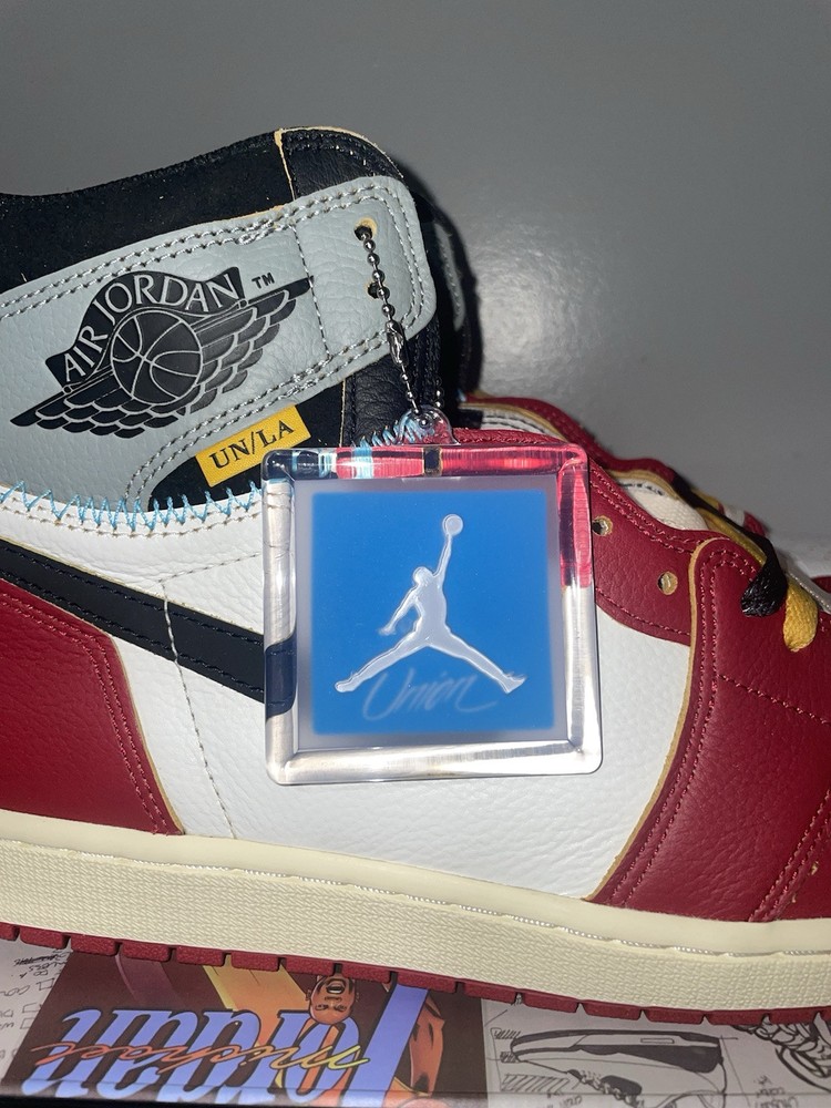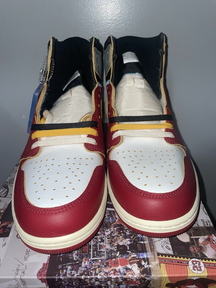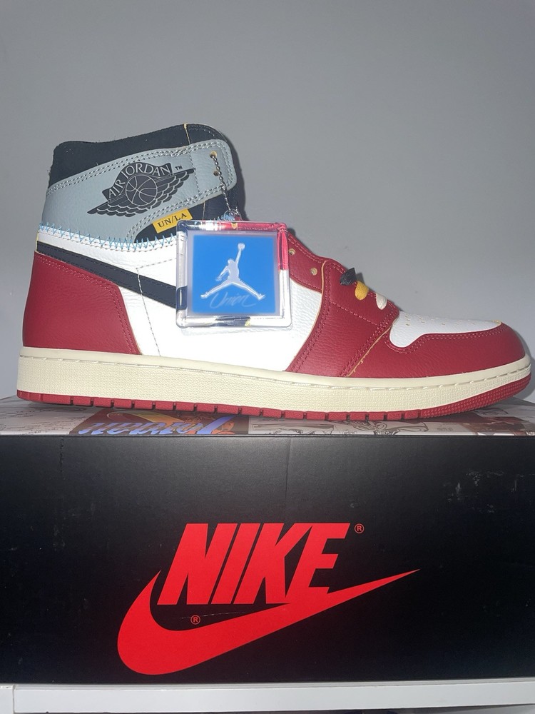Step up your sneaker game with the Union LA x Nike Air Jordan 1 Retro OG SP High Chicago Shadow in size 13. Made with premium leather, these high-top sneakers feature a classic red colorway with a retro theme. The style code HV8563-600 adds a unique touch to these iconic athletic shoes. Part of the Air Jordan product line, these sneakers are perfect for any fan looking for a stylish and comfortable addition to their collection. The sneaker's release year is 2025, making it a timeless piece that will never go out of style. Don't miss out on the opportunity to own these Jordan sneakers.