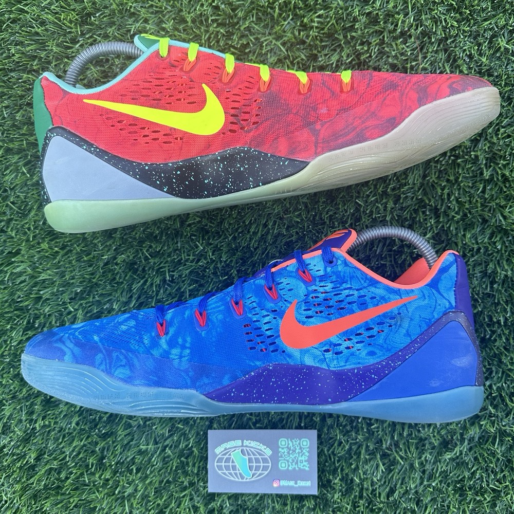 Kobe 9 ID “What The” - Size: 14 - Description: Very light use, no flaws, soles very grippy, 100% court ready! - Price: $1,999 - All sales are final. I am not responsible for any age-related or description-mentioned issues This Nike Kobe 9 sneaker is a must-have for any athletic shoe collector. With its low top style and multicolor design, it's perfect for both casual wear and sports activities. The shoe's style code is 677992-995 and it was released in 2014. The Kobe 9 ID “What The Kobe” is a size 14 sneaker made for men. Its product line is Nike Kobe and it belongs to the athletic shoes category. This sneaker is ideal for those who want to add a unique touch to their shoe collection.