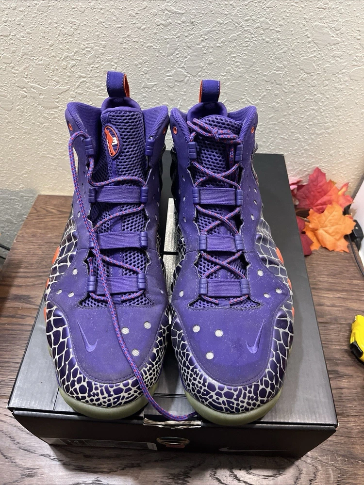 Color: Purple Character: Godzilla Type: Athletic Department: Men US Shoe Size: 14 Product Line: Nike Barkley Posite Max Closure: Lace Up Release Year: 2013 Brand: Nike Style Code: 555097-581 Model: Nike Barkley Posite Max Style: Sneaker