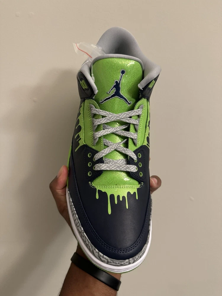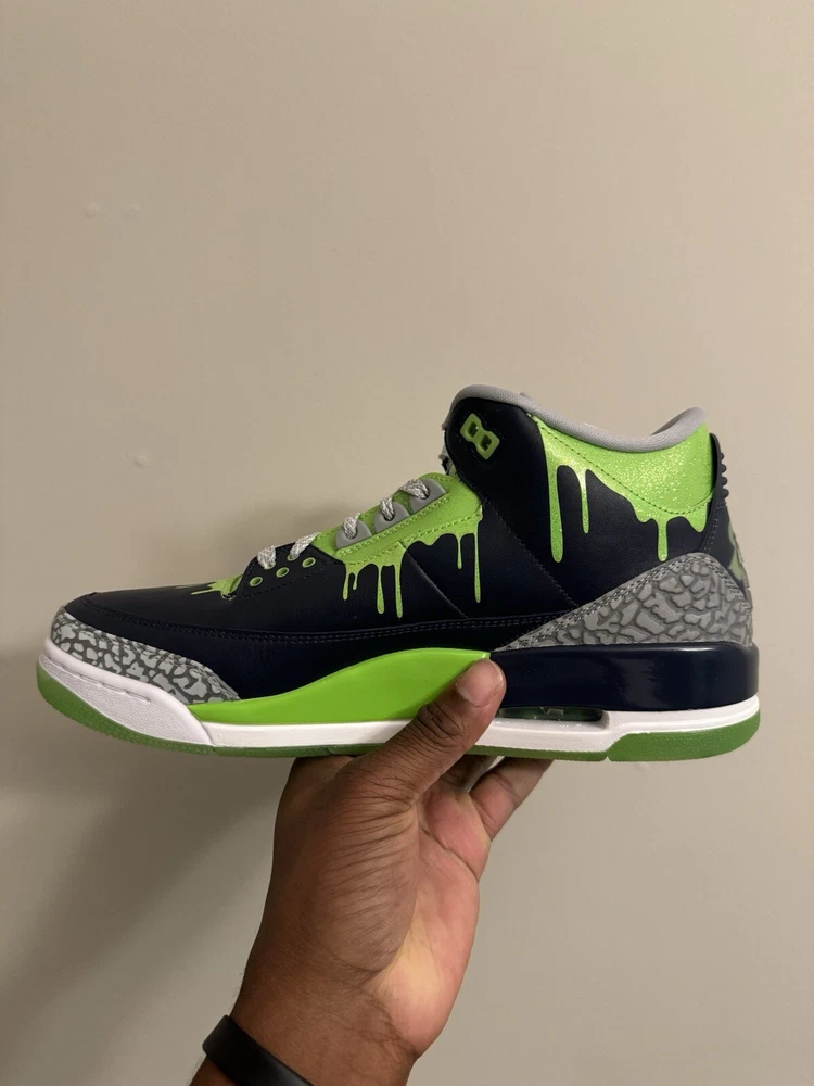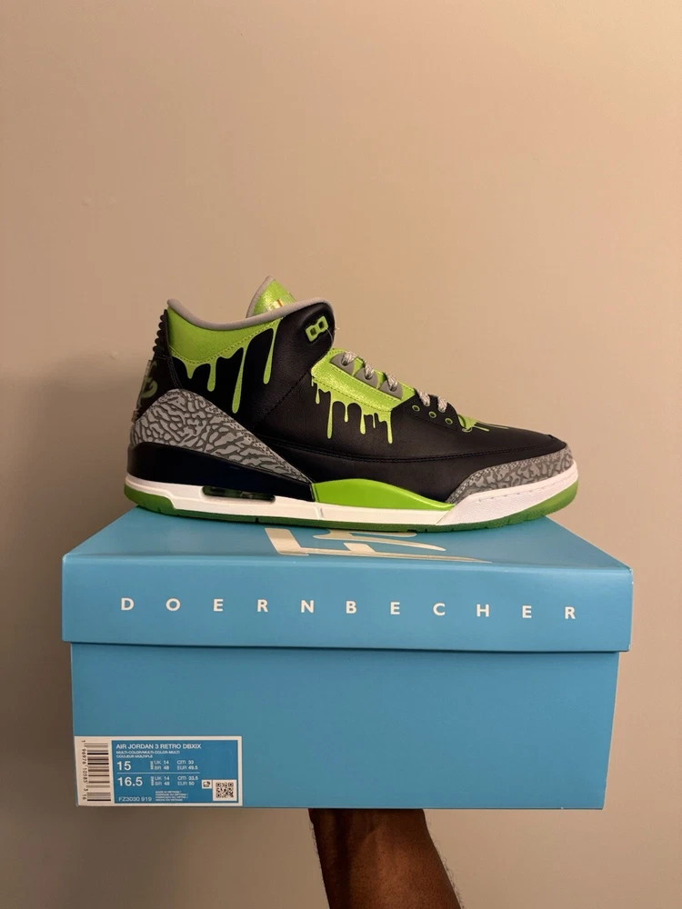 Elevate your sneaker game with these limited edition Air Jordan 3 Doernbecher in blue. Designed with a mid-top silhouette, tie and lace-up closure, and a foam insole, these sneakers ensure both comfort and style. The leather upper material and rubber cleat type make them suitable for various occasions, including gym and training, walking, cross-training, CrossFit, and basketball. These sneakers are perfect for men who want to add a touch of retro to their wardrobe. The solid pattern and Snike character make them a versatile addition to any casual or activewear outfit. With a release year of 2023 and a US shoe size of 15, these Air Jordan 3 Doernbecher sneakers are a must-have for any sneakerhead.