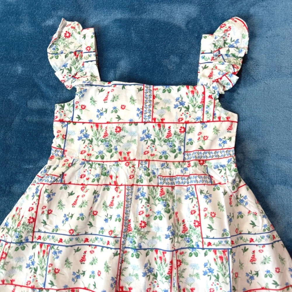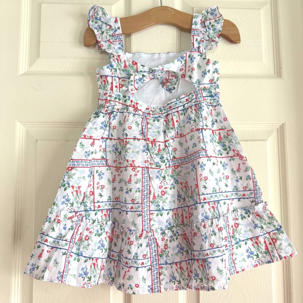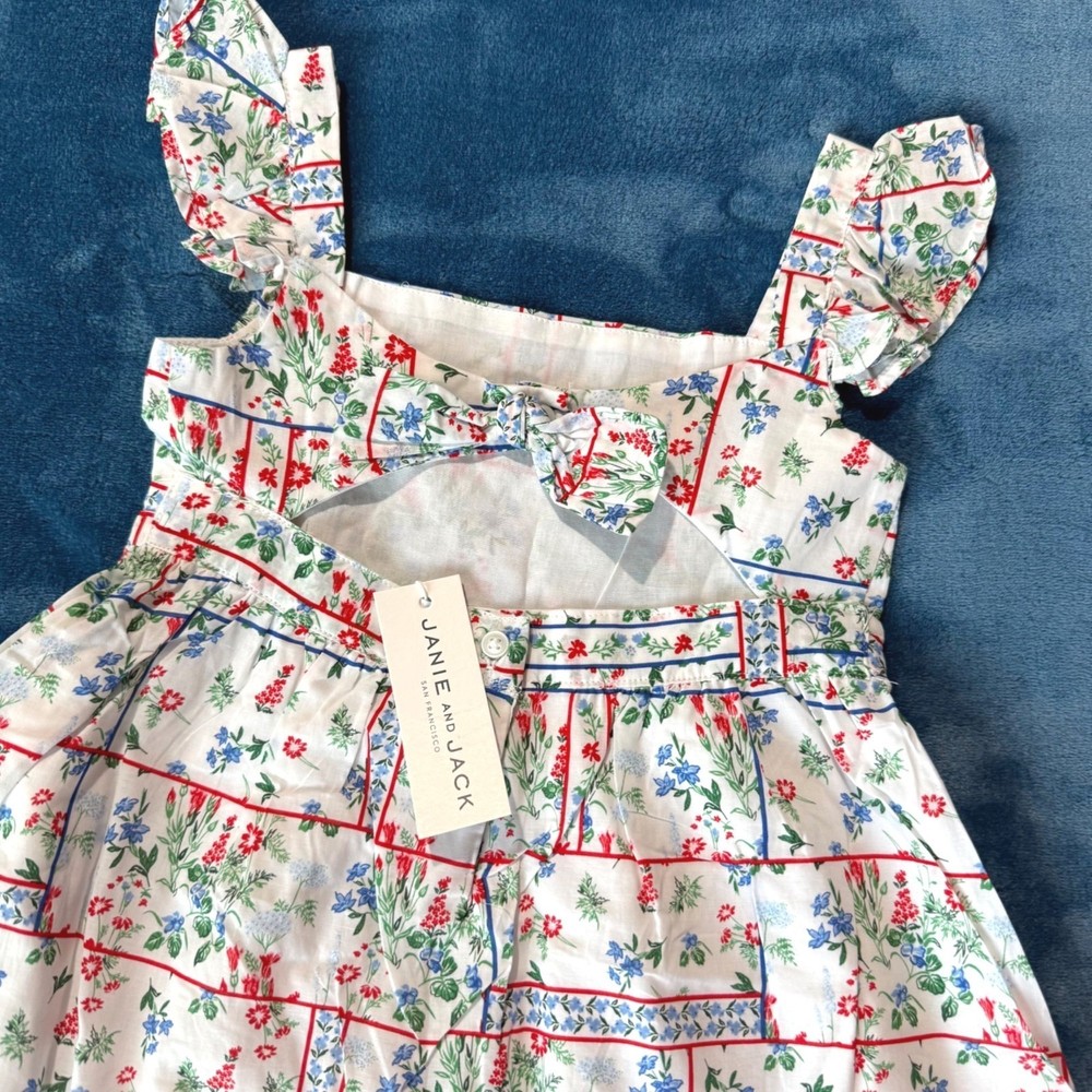 Size 4 NWT Janie & Jack Girls Floral Sleeveless Summer Dress open back w/bow New, tags intact. Pristine condition. • Made Of 100% Cotton For Comfort & Breathability • Features Ruffle Straps & Bow Detail On Back • Fully Lined Skirt With Ruffle Trim • Vibrant Floral Pattern In Red, Blue on white background girls summer dress, cotton floral dress, ruffle strap dress, kids summer outfit, Janie & Jack dress, size 4 dress, toddler floral dress, girls party dress, kids boutique dress, floral pattern dress, sleeveless kids dress, multicolor kids clothing, breathable cotton dress, janie and jack, red white and blue, patriotic, Summer, July 4th, USA Features: • sundress Size: Girls 4 Condition: New With Tags #girlssummerdress #cottonfloraldress #rufflestrapdress #kidssummeroutfit #Janie&Jackdress