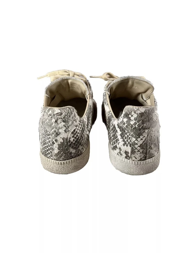 Maison Margiela Snakeskin GATs Size: 42 EU = 9 / 9.5 M US Color: White/Grey Condition: Used A personal pair from my collection i am sz9.5 fits perfect def can fit half sz down and maybe half sz up from 9.5, this is such a rare shoe with a illusion of snakeskin leather on pony hair/fur type of upper material which is soft, heel drag is at a slim minimum , good piece to rock everyday; hearing offers Any questions feel free to shoot me a message All items shipped ASAP🚨!!! Follow & Dm My bio for discount💯