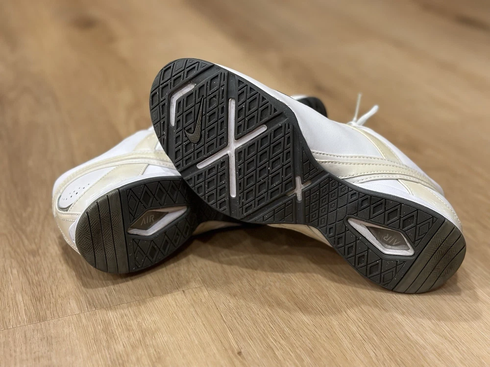 Elevate your activewear game with these Nike Air Cardio III Low sneakers in white. Designed for women, these athletic shoes boast a lace-up closure, low-top shoe shaft style, and a standard shoe width. The synthetic upper material, blended fabric, and foam insole material ensure a comfortable fit for running and jogging. These sneakers were manufactured in 2011 and have a solid pattern with a rubber outsole material. The Nike Air product line and cardio activity make these shoes perfect for any workout occasion. Get ready to step up your fitness game with these Nike Air Cardio III Low sneakers.