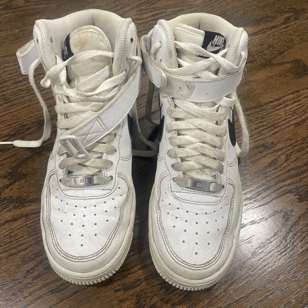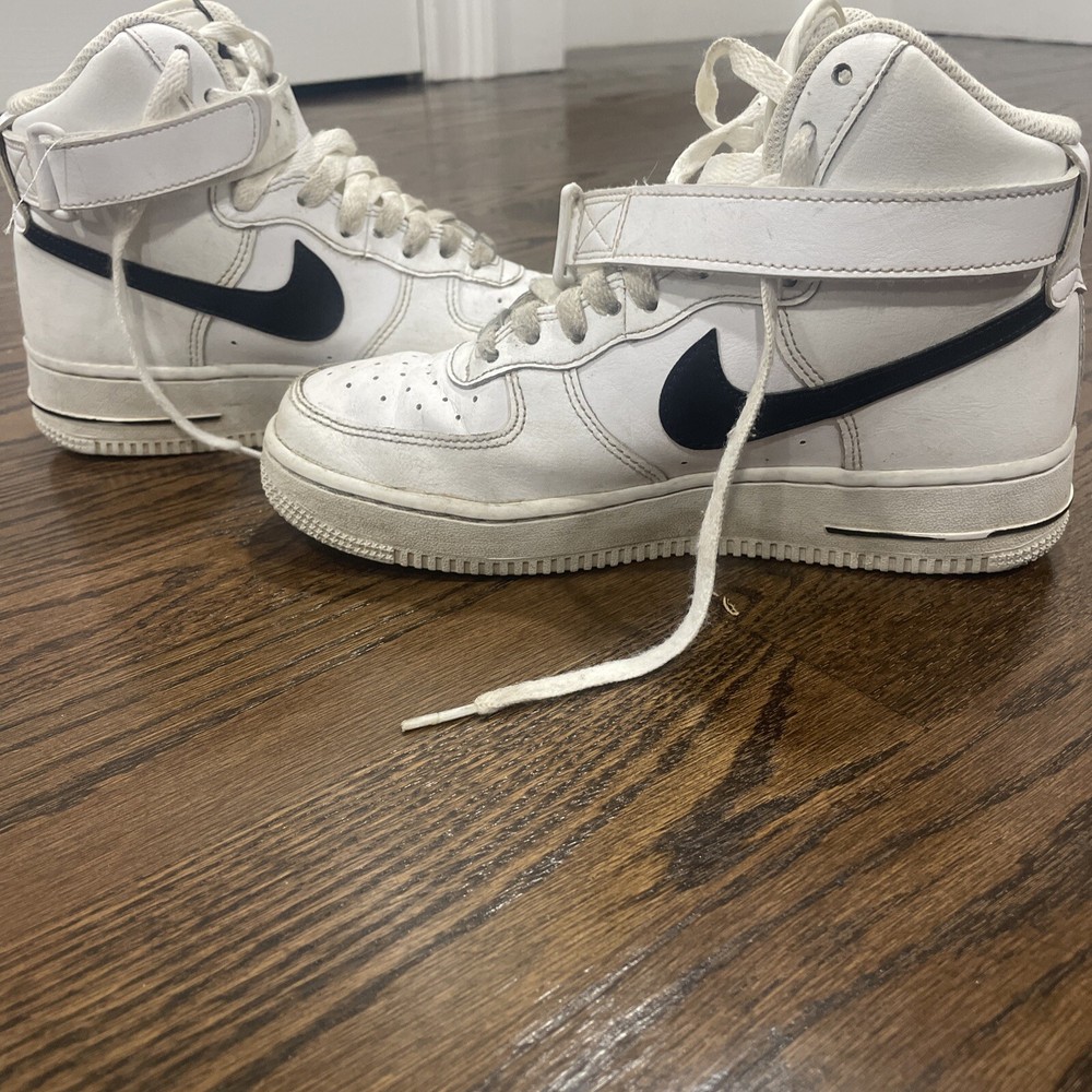 Elevate your sneaker game with these Nike Air Force 1 High Tops in White and Black. With a sleek design and high-quality materials, these shoes are perfect for any athletic occasion. The size 6 fit is perfect for men who want to make a statement with their footwear. The white and black colorway, along with the CK4369-100 style code, make these shoes a must-have for any Nike enthusiast. These sneakers are part of the Nike Air Force product line and were released in 2019. Don't miss out on the chance to add these stylish and functional shoes to your collection.